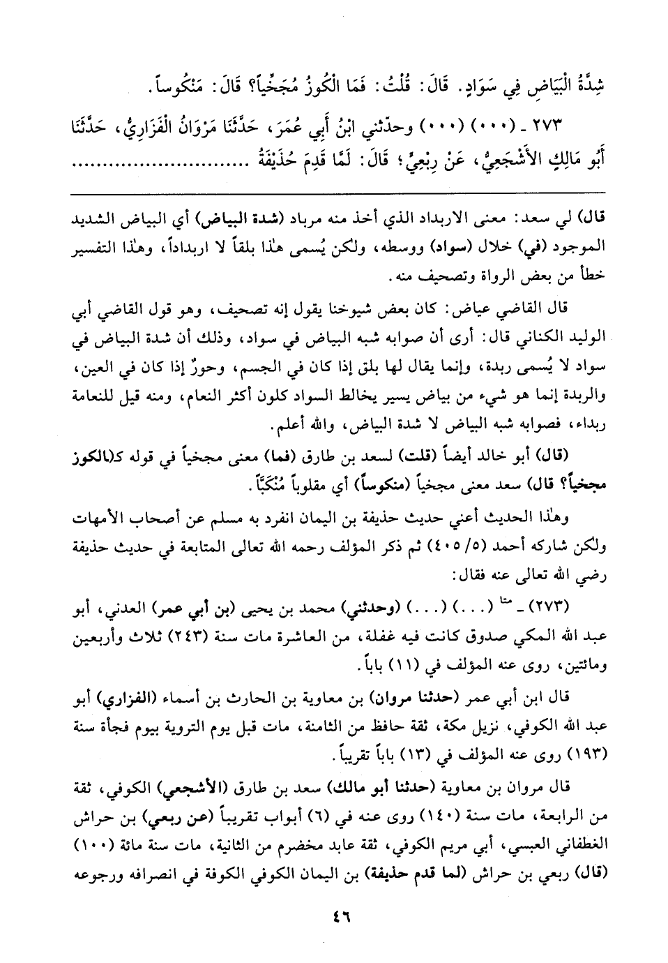 ٢٧٣ - (٠٠) (٠٠) وحدَّثني ابْنُ أَبِي عُمَرَ، حَدَّثَنَا مَرْوَانُ الفَزَارِيُّ، حَدَّثَنَا أَبُو مَالِكٍ الأشجَعِيُّ، عَن رِبْعِيٍّ؛ قَال: لَمَّا قَدِمَ حُذَيفَةُ