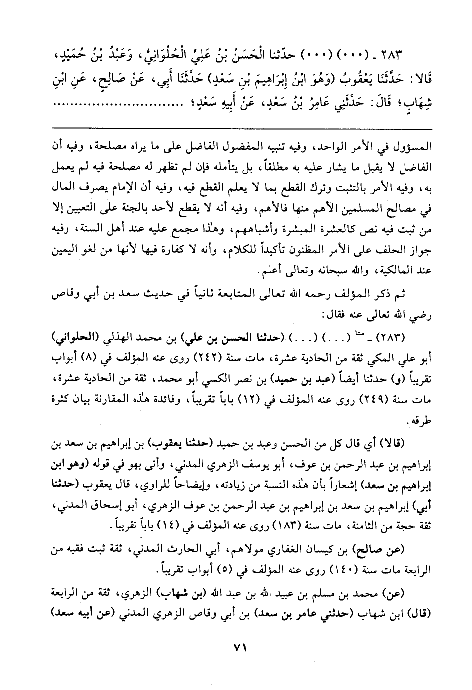٢٨٣ - (٠٠) (٠٠) (حدَّثنا الْحَسَنُ بْنُ عَلِيٍّ الْحُلْوَانِي، وَعَبْدُ بن حُمَيدٍ، قَالا: حَدَّثَنَا يَعْقُوبُ (وَهُوَ ابْنُ إِبرَاهِيمَ بْنِ سَعْدٍ) حَدَّثَنَا أَبِي، عَنْ صَالِحٍ، عَنِ ابْنِ شِهَابٍ؛ قَال: حَدَّثَنِي عَامِرُ بْنُ سَعْدٍ، عَنْ أَبِيهِ سَعدٍ؛