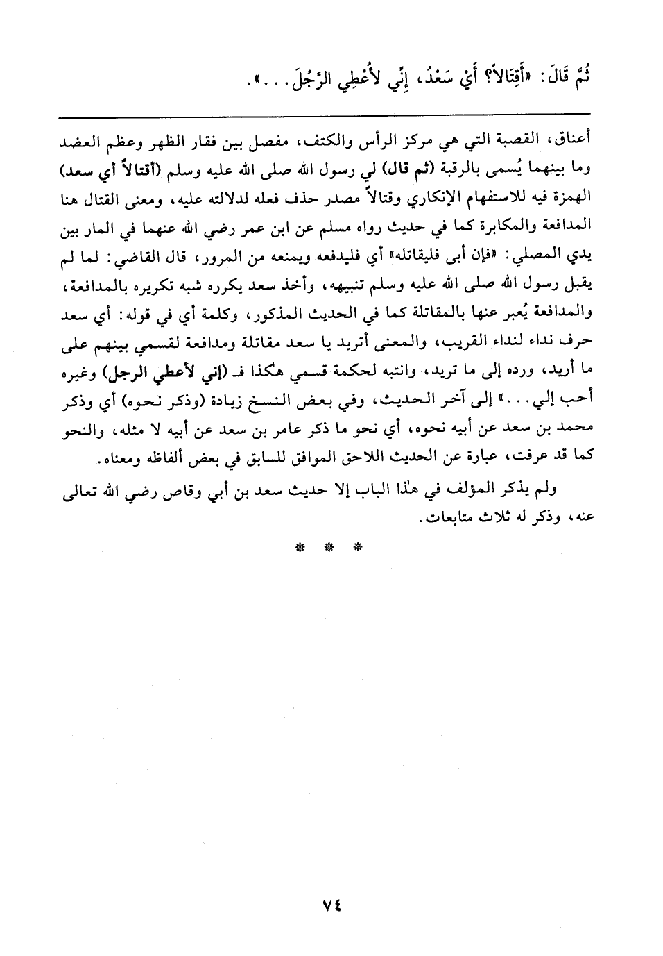 ثُمَّ قَال: "أَقِتَالًا؟ أَي سَعدُ، إِنِّي لأُعطِي الرَّجُلَ ... "