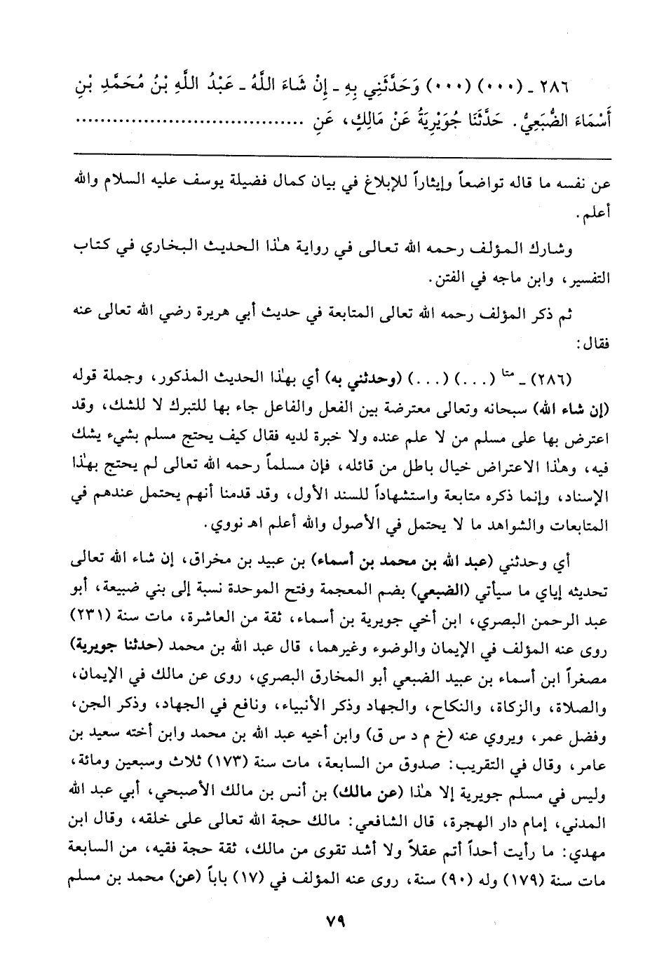 ٢٨٦ - (٠٠) (٠٠) وَحَدَّثَنِي بِهِ -إِنْ شَاءَ اللهُ- عَبْدُ اللهِ بْنُ مُحَمَّدِ بْنِ أَسْمَاءَ الضُّبَعِيُّ. حَدَّثَنَا جُوَيرِيَةُ عَنْ مَالِكٍ، عَنِ