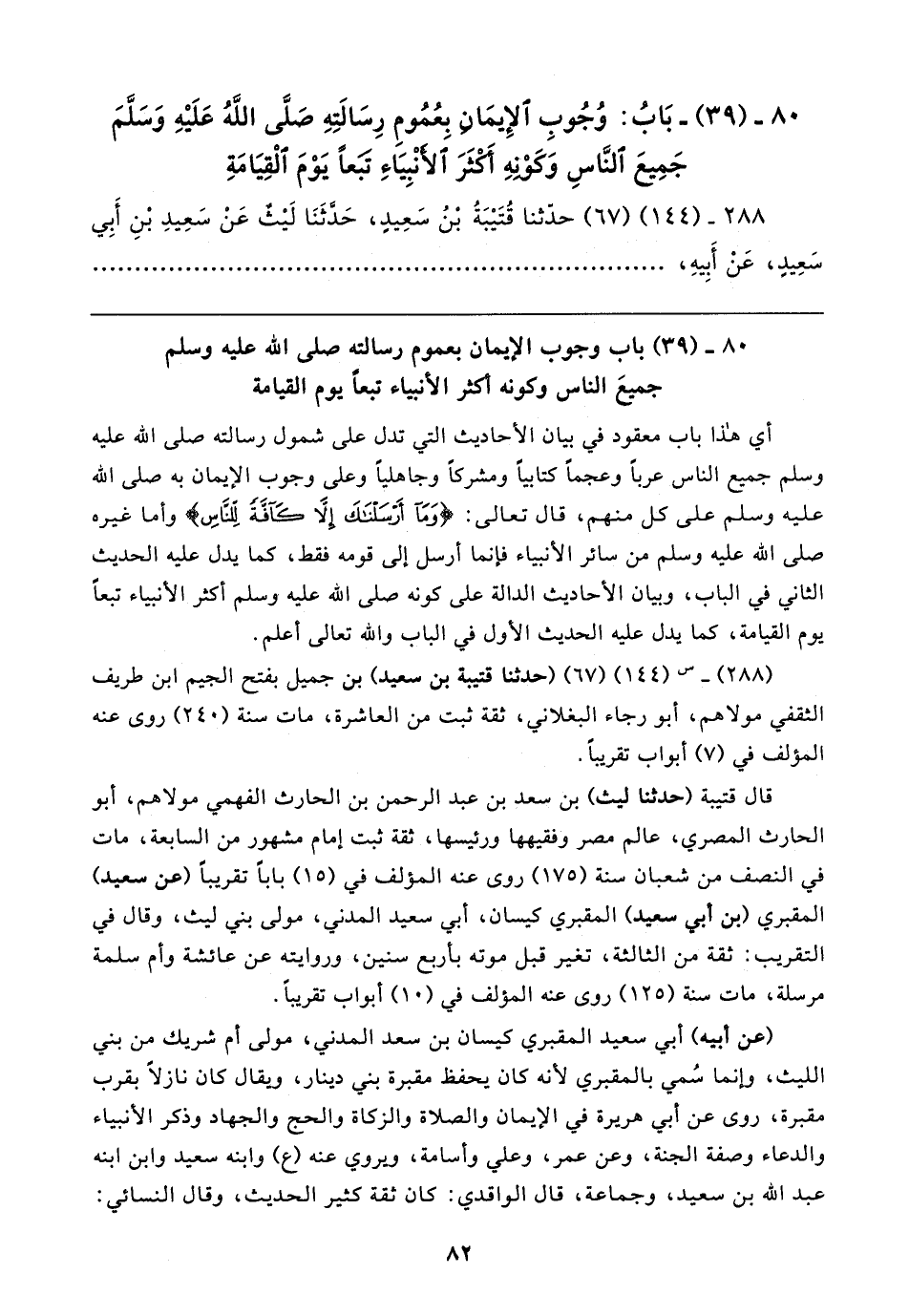 ٨٠ - (٣٩) - بَابُ: وُجُوبِ الإِيمَانِ بِعُمُومِ رِسَالتِهِ صَلَّى اللَّه عَلَيهِ وَسَلَّمَ جَمِيعَ النَّاسِ وَكَونِهِ أَكْثَرَ الأنْبِيَاءِ تبَعًا يَوْمَ الْقِيَامَةِ