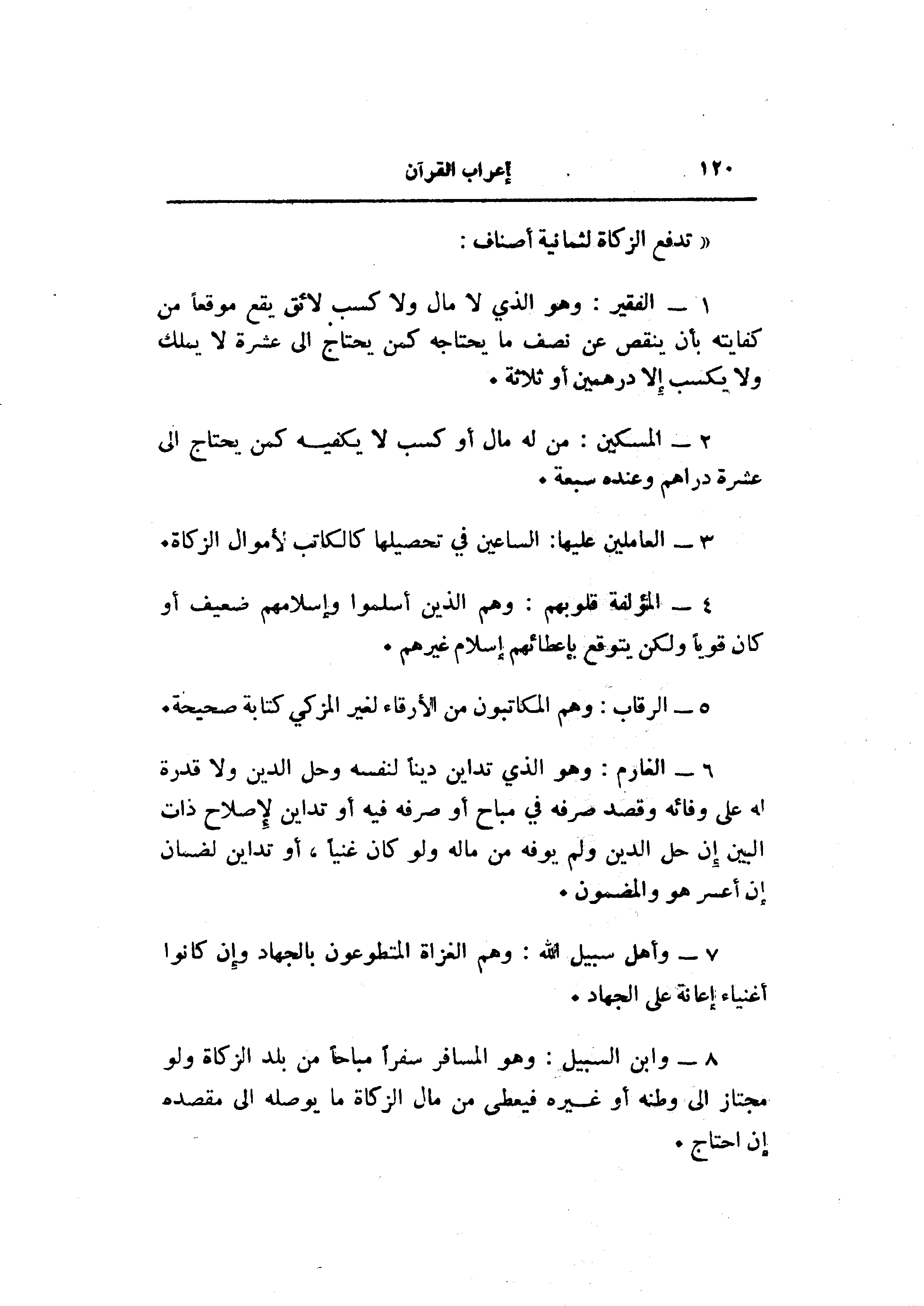 «تدفع الزكاة لثمانية أصناف: