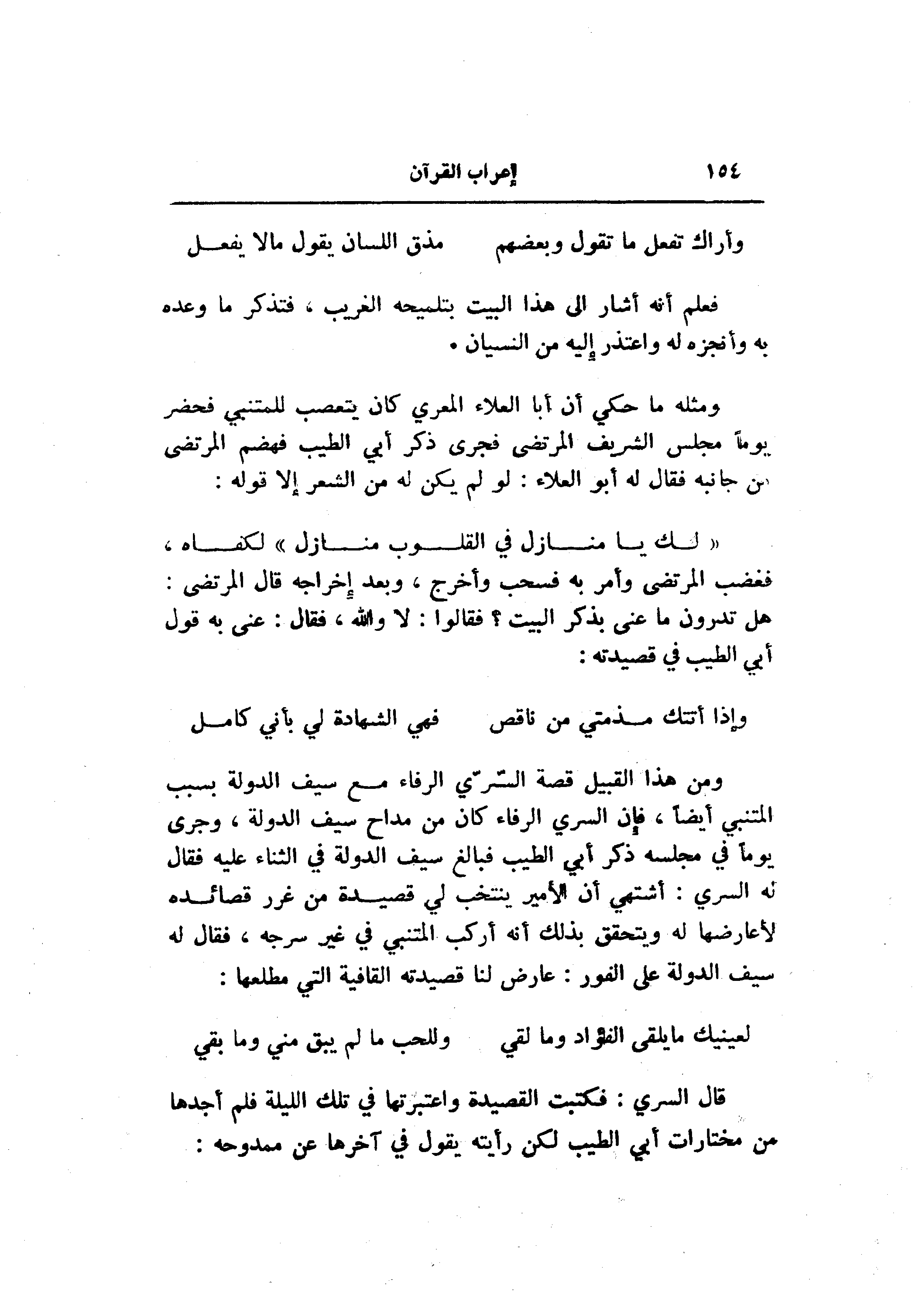 هل تدرون ما عنى بذكر البيت؟ فقالوا: لا والله، فقال: عنى به قول أبي الطيب في قصيدته: