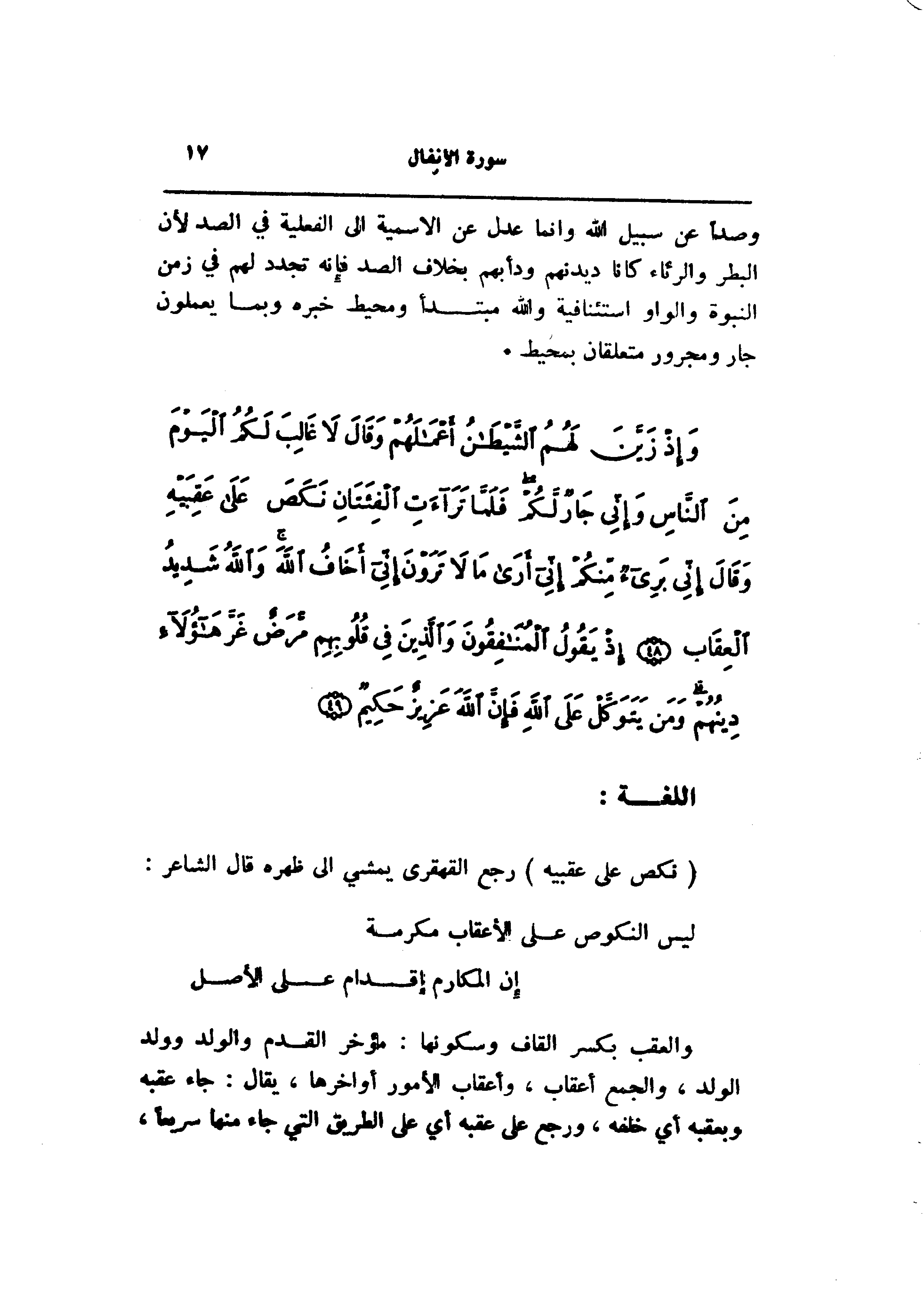 (نَكَصَ عَلى عَقِبَيْهِ) رجع القهقرى يمشي الى ظهره قال الشاعر: