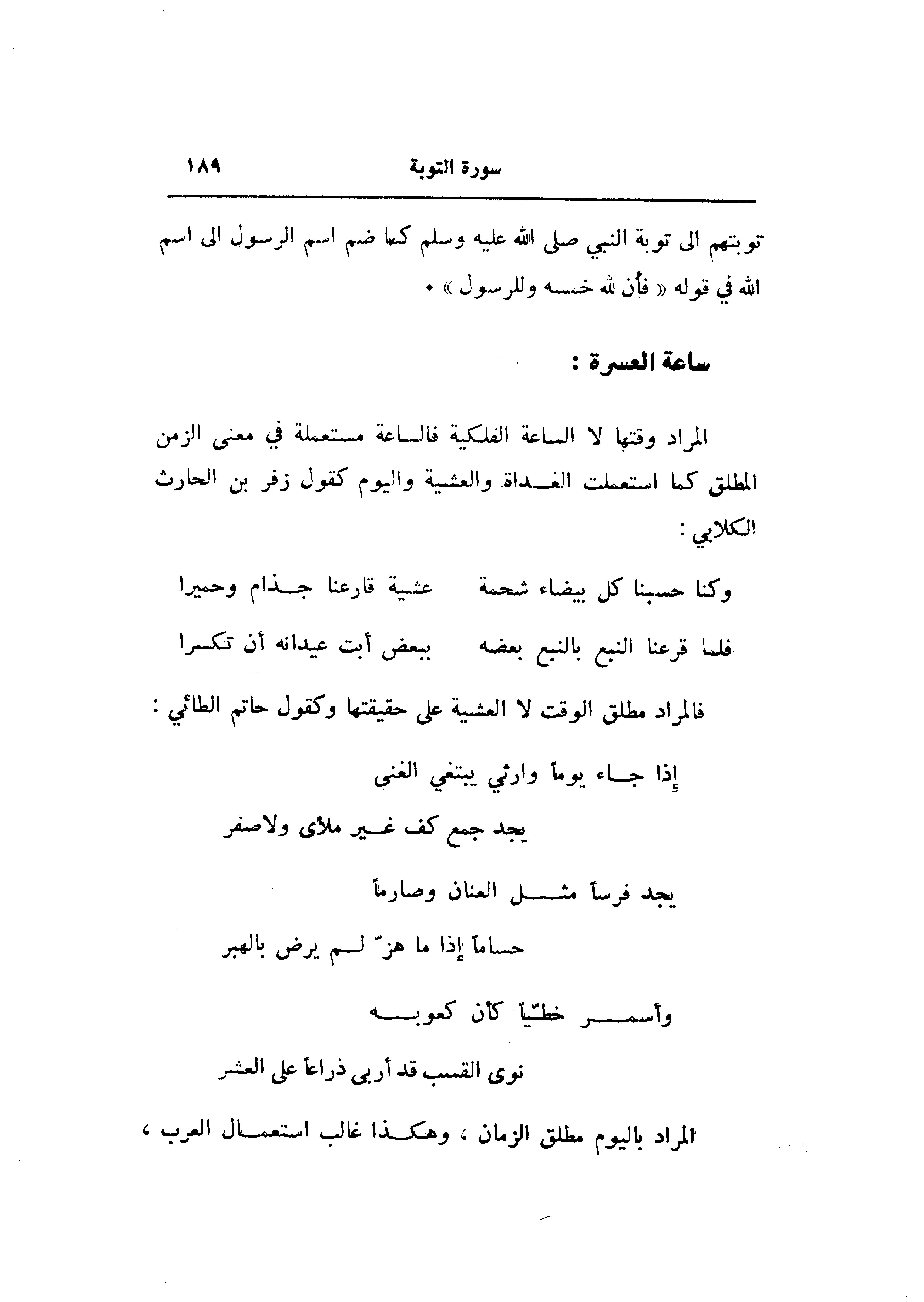 المراد وقتها لا الساعة الفلكية فالساعة مستعملة في معنى الزمن المطلق كما استعملت الغداة والعشية واليوم كقول زفر بن الحارث الكلابي: