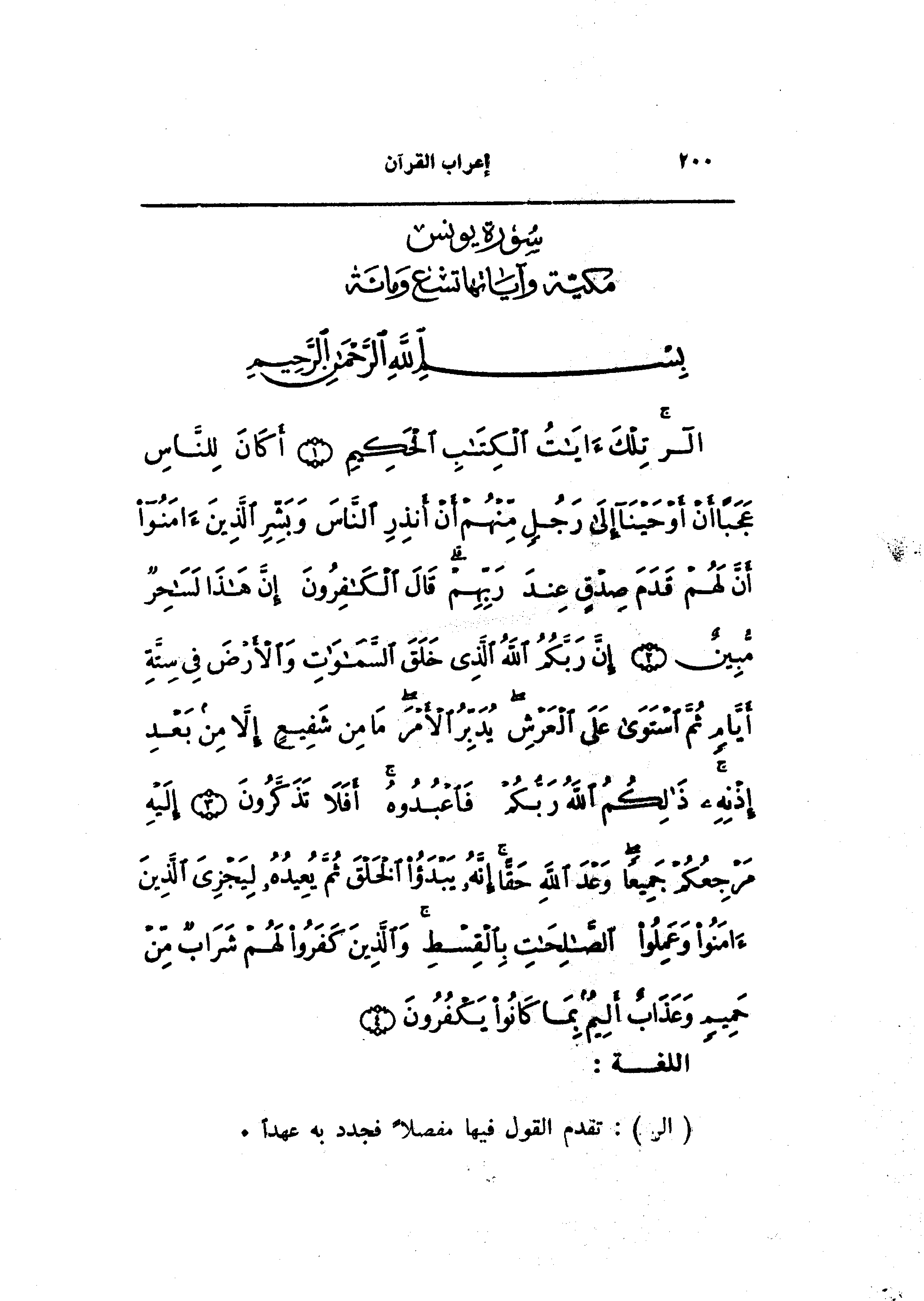 (10) سورة يونس مكية وآياتها تسع ومائة