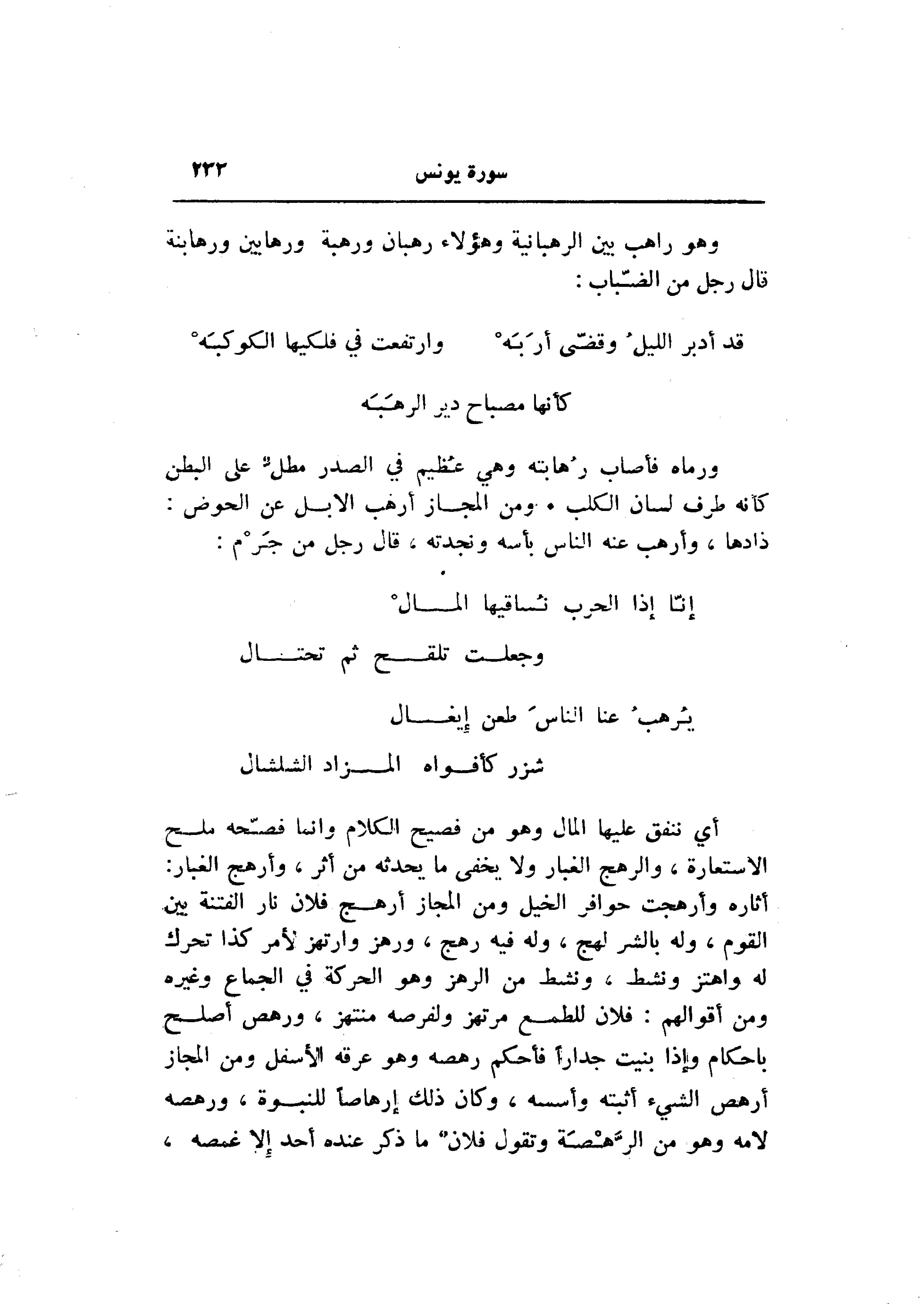كأنها مصباح دير الرهبة ورماه فأصاب رهابته وهي عظيم في الصدر مطلّ على البطن كأنه طرف لسان الكلب. ومن المجاز أرهب الإبل عن الحوض: