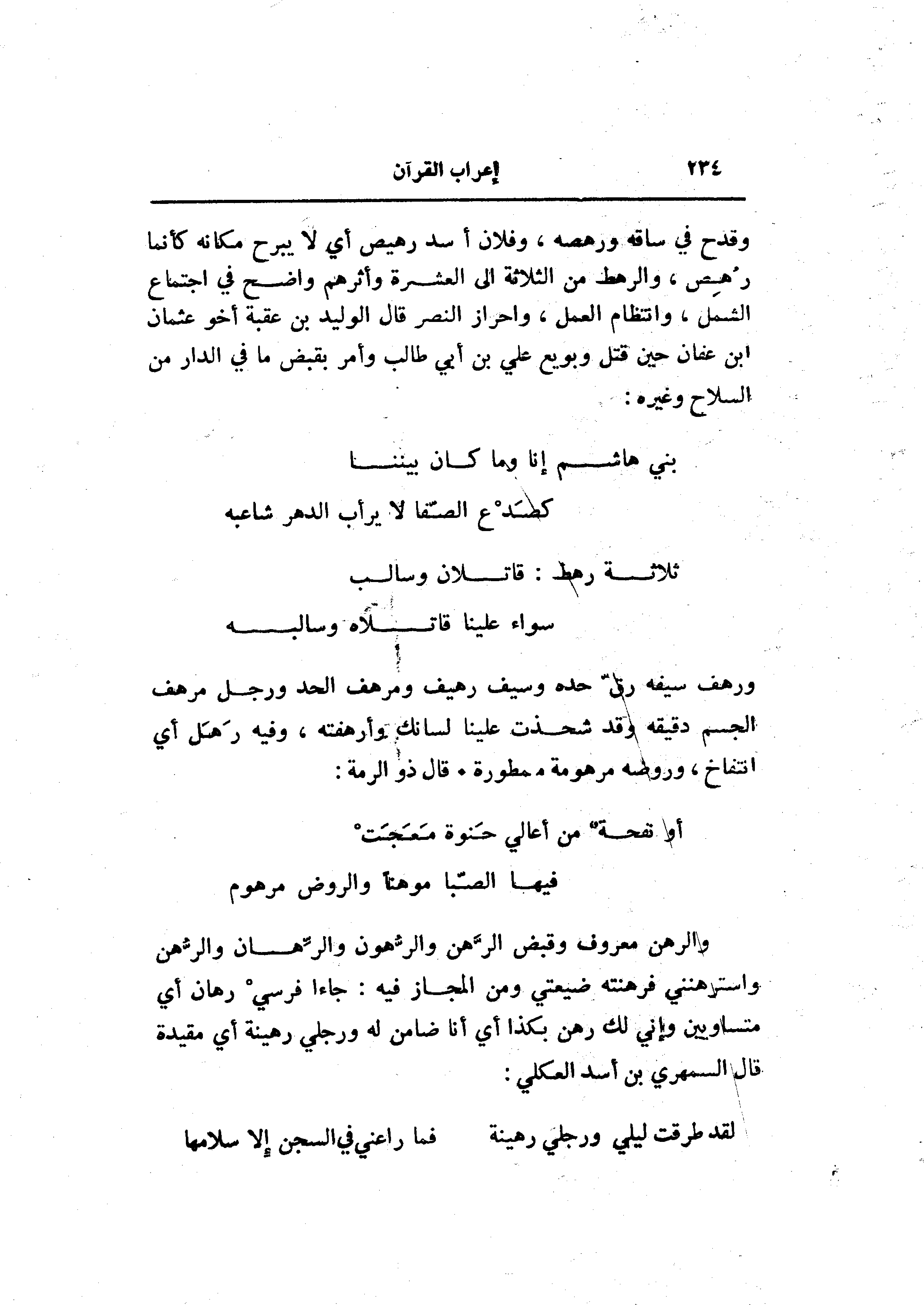 والرهن معروف وقبض الرّهن والرّهون والرّهان والرّهن واسترهنني فرهنته ضيعتي ومن المجاز فيه: جاءا فرسي رهان أي متساويين وإني لك رهن بكذا أي أنا ضامن له ورجلي رهينة أي مقيدة قال السمهري بن أسد العكلي: