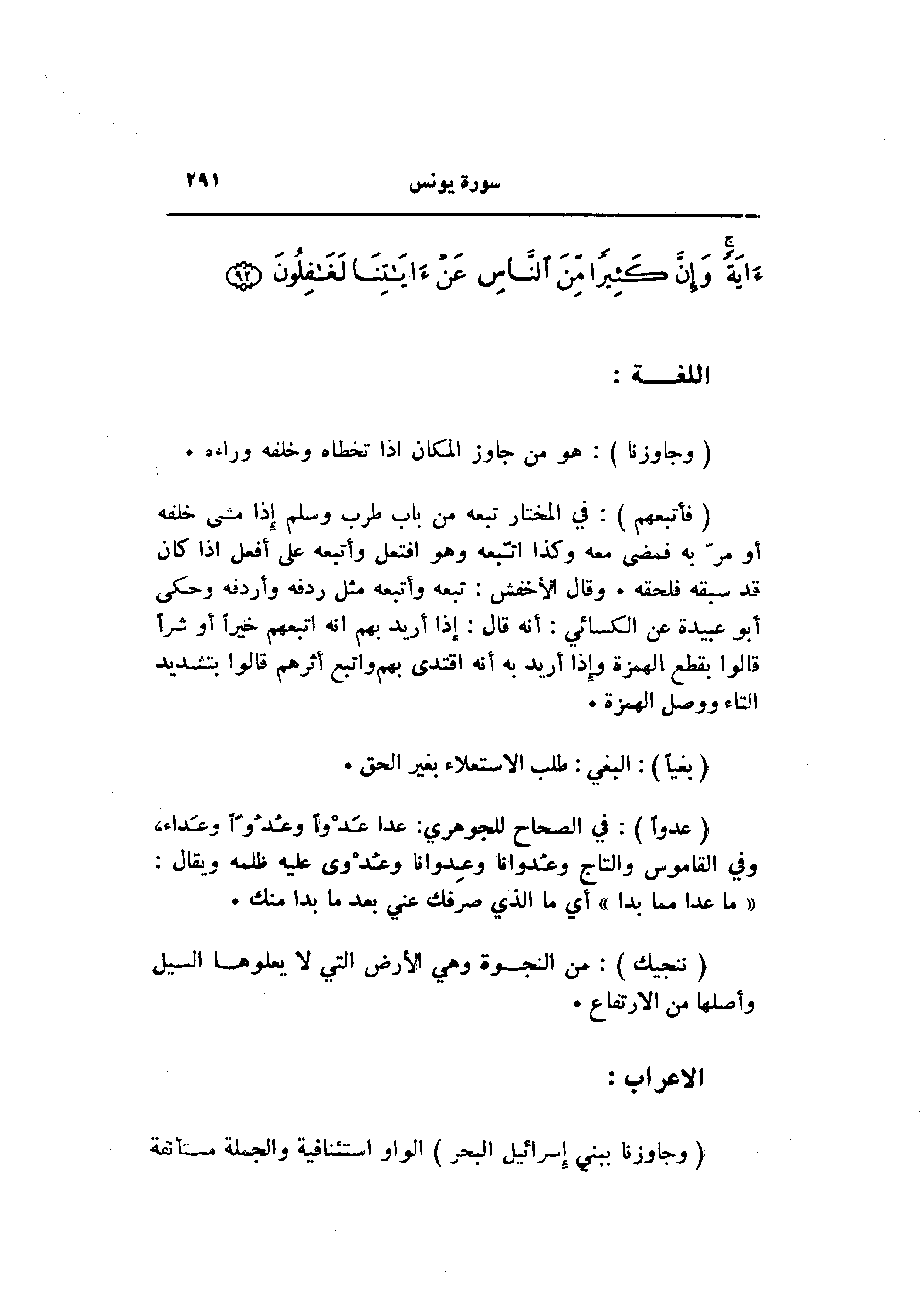 (وَجاوَزْنا) : هو من جاوز المكان إذا تخطاه وخلفه وراءه.