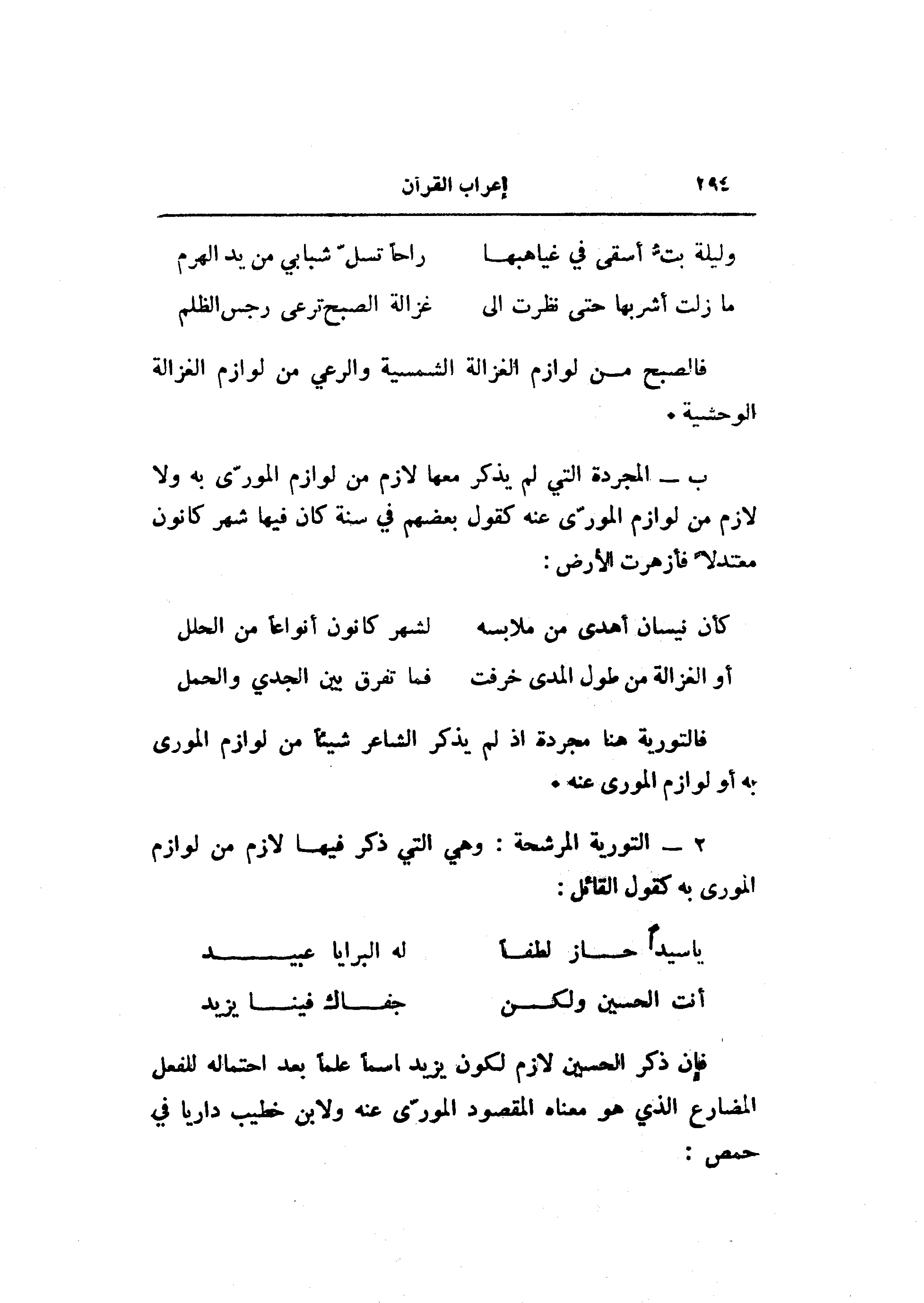 فإن ذكر الحسين لازم لكون يزيد اسما علما بعد احتماله للفعل المضارع الذي هو معناه المقصود المورّى عنه ولابن خطيب داريا في حمص: