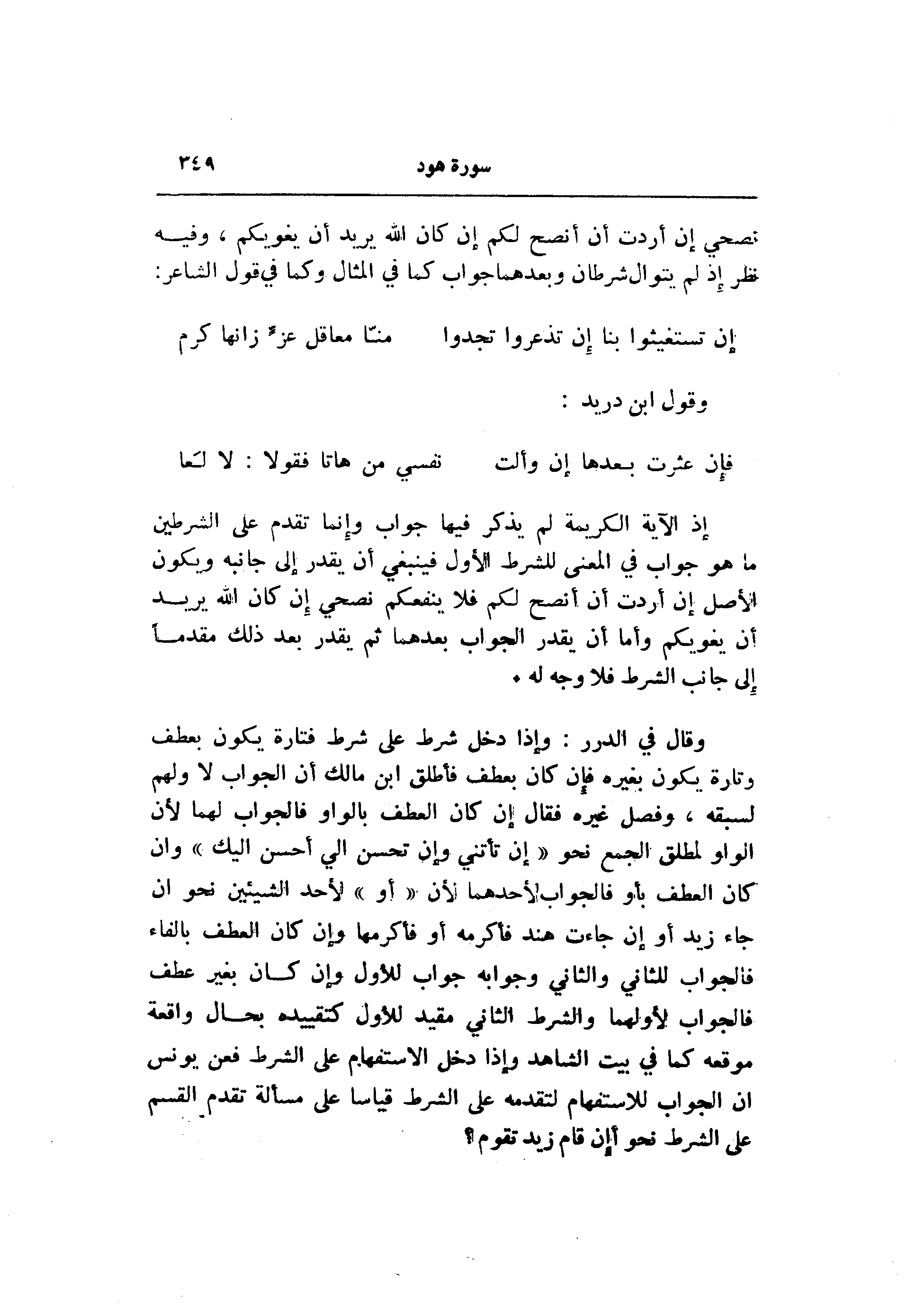 نصحي إن أردت أن أنصح لكم إن كان الله يريد أن يغويكم، وفيه نظر إذ لم يتوال شرطان وبعدهما جواب كما في المثال وكما في قول الشاعر: