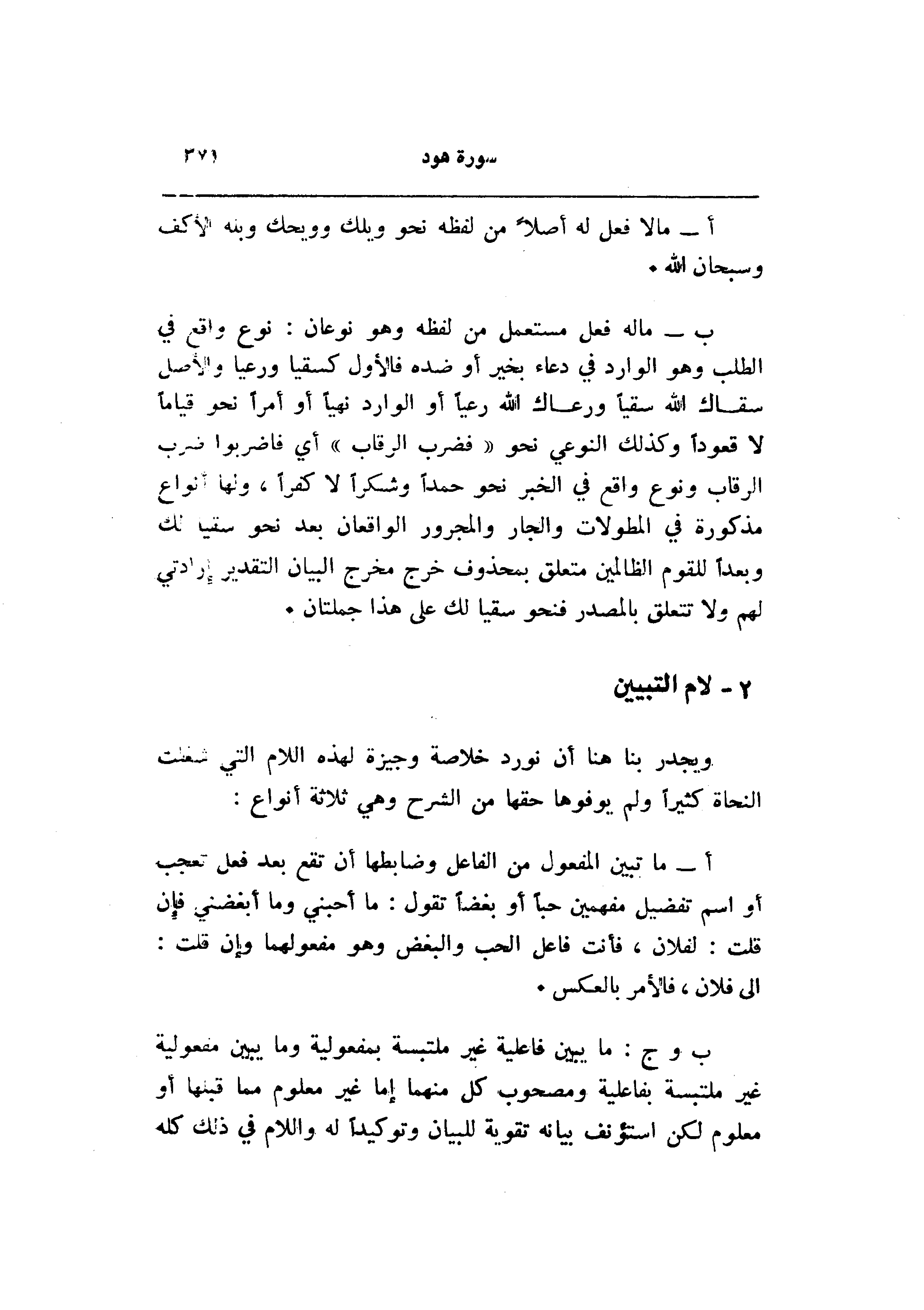 ويجدر بنا هنا أن نورد خلاصة وجيزة لهذه اللام التي شغلت النحاة كثيرا ولم يوفوها حقها من الشرح وهي ثلاثة أنواع: