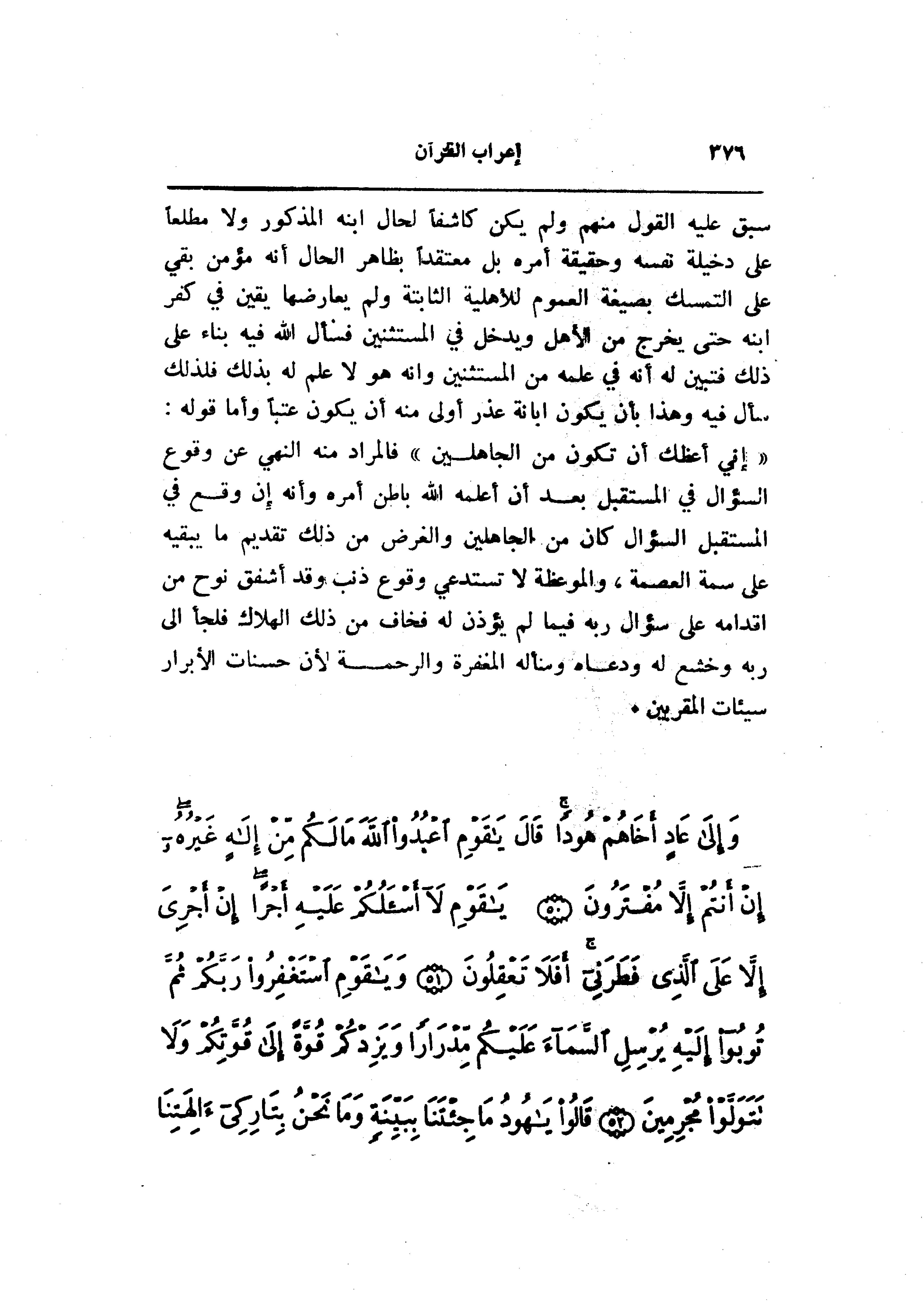 «إني أعظك أن تكون من الجاهلين» فالمراد منه النهي عن وقوع السؤال في المستقبل بعد أن أعلمه الله باطن أمره وأنه إن وقع في المستقبل السؤال كان من الجاهلين والغرض من ذلك تقديم ما يبقيه على سمة العصمة، والموعظة لا تستدعي وقوع ذنب وقد أشفق نوح من اقدامه على سؤال ربه فيما لم يؤذن له فخاف من ذلك الهلاك فلجأ الى ربه وخشع له ودعاه وسأله المغفرة والرحمة لأن حسنات الأبرار سيئات المقربين.