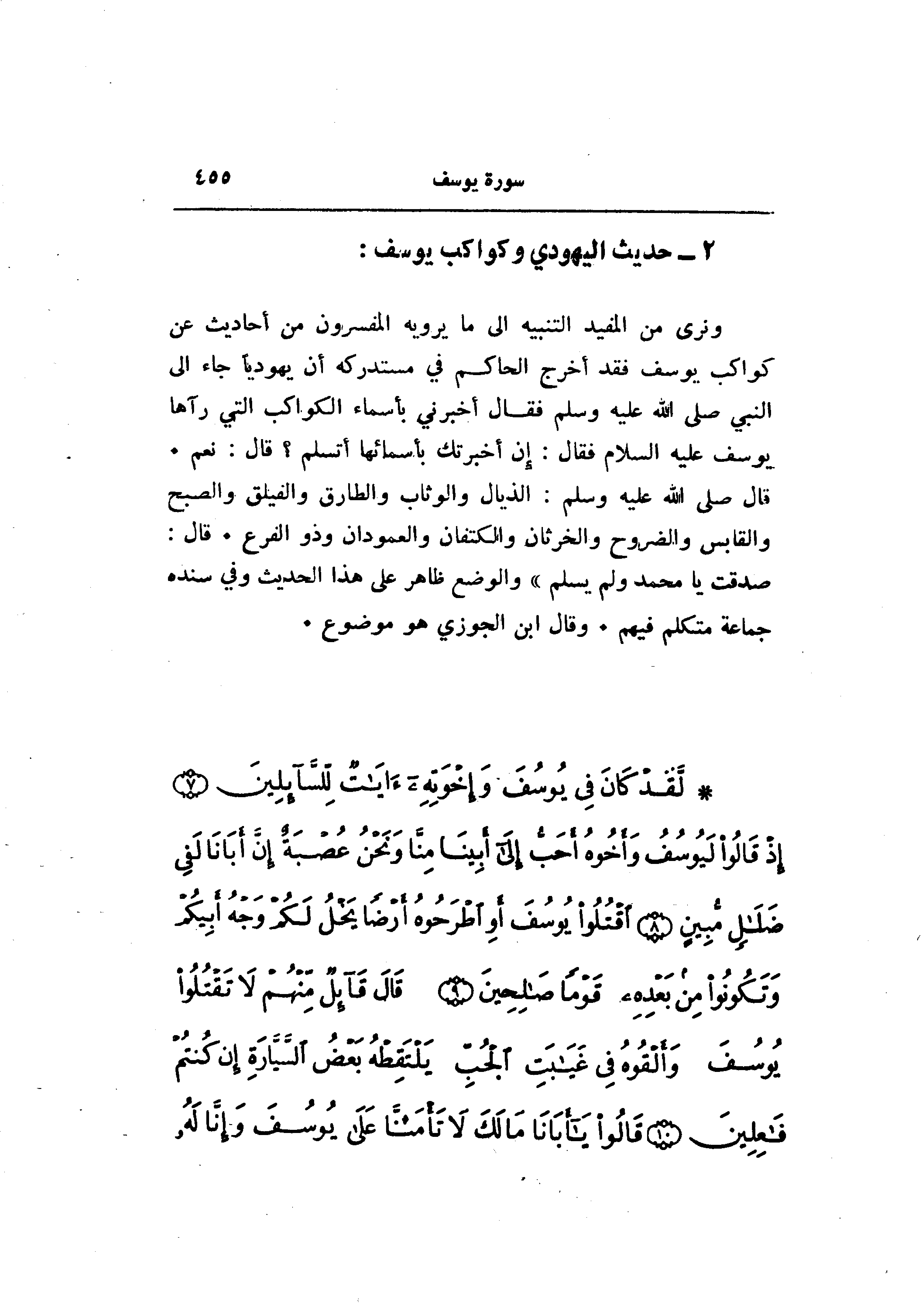 2- حديث اليهودي وكواكب يوسف: