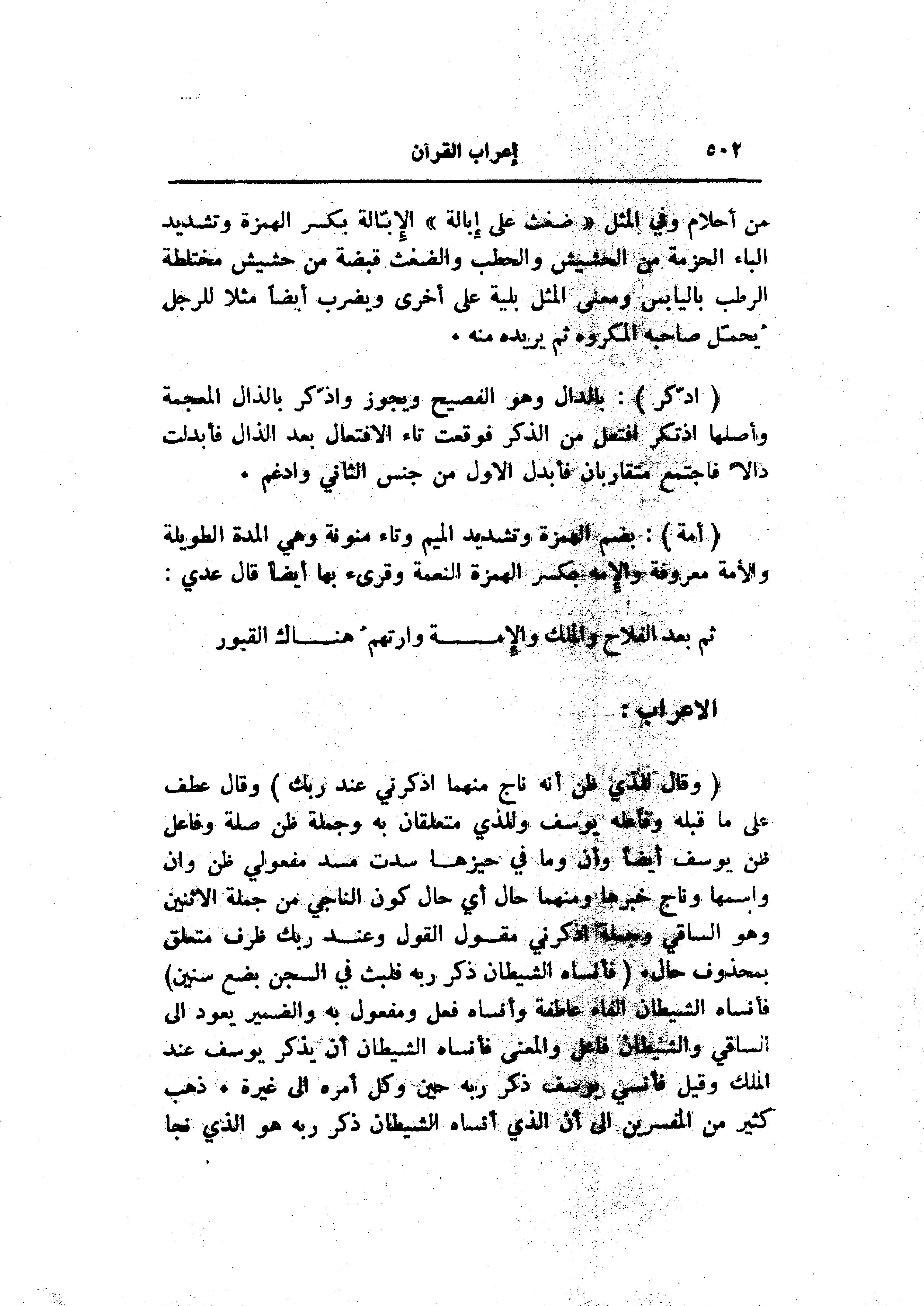 (ادَّكَرَ) : بالدال وهو الفصيح ويجوز واذّكر بالذال المعجمة وأصلها اذتكر افتعل من الذكر فوقعت تاء الافتعال بعد الذال فأبدلت دالا فاجتمع متقاربان فأبدل الاول من جنس الثاني وادغم.