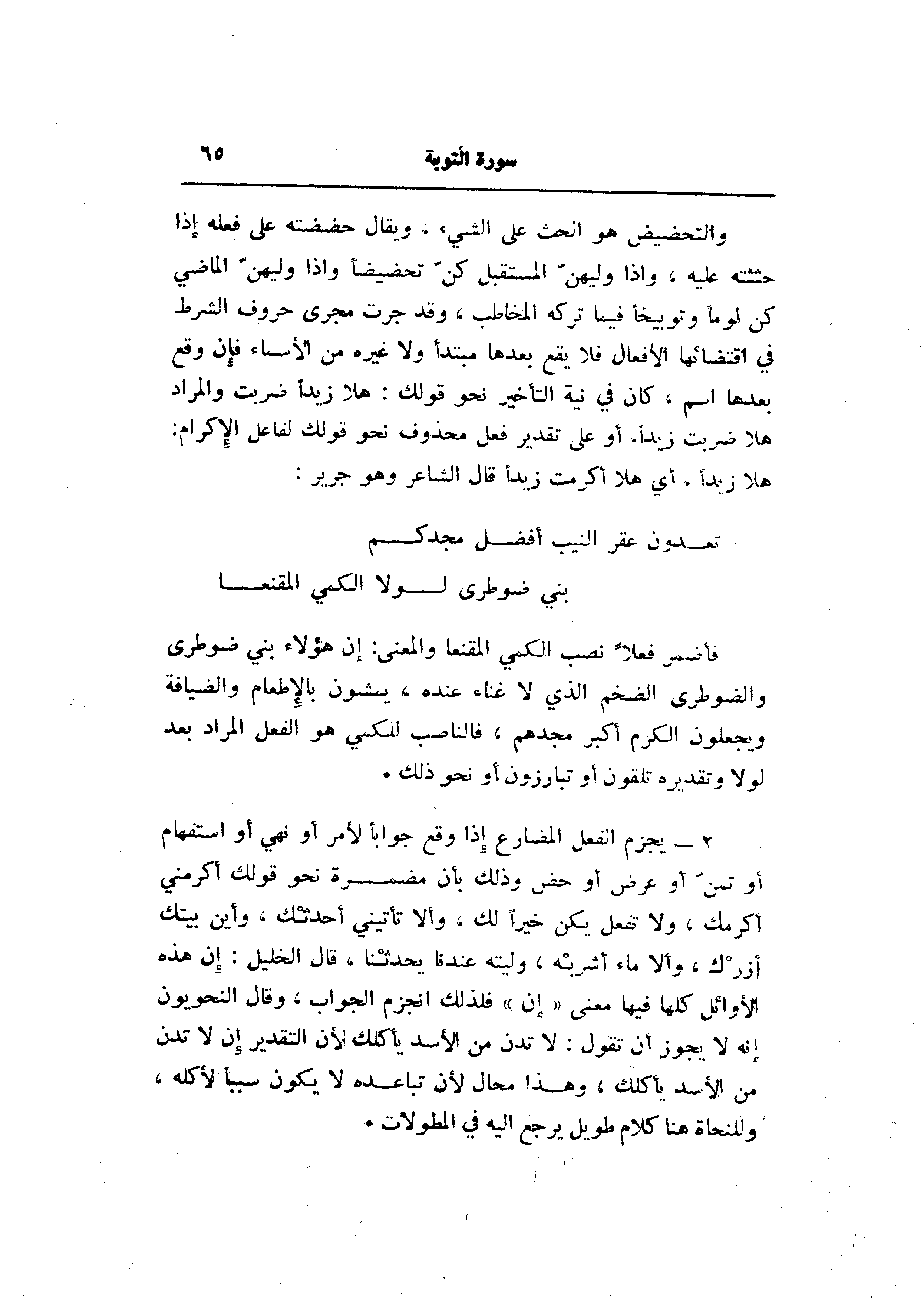 هلا زيدا، أي هلا أكرمت زيدا قال الشاعر وهو جرير:
