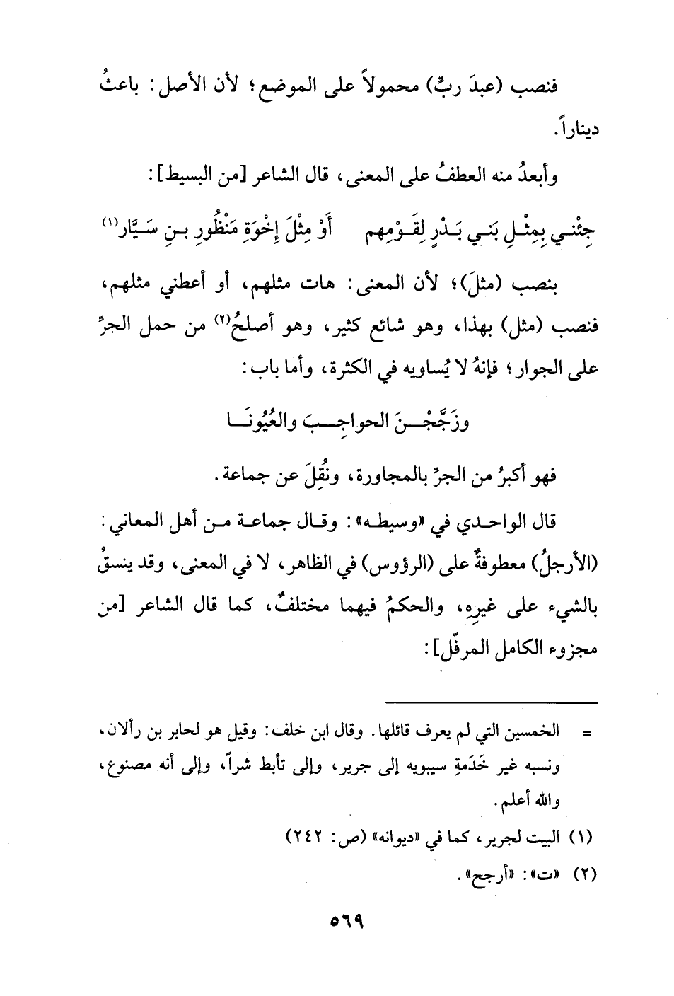 (¬1) البيت لجرير، كما في "ديوانه" (ص: 242).