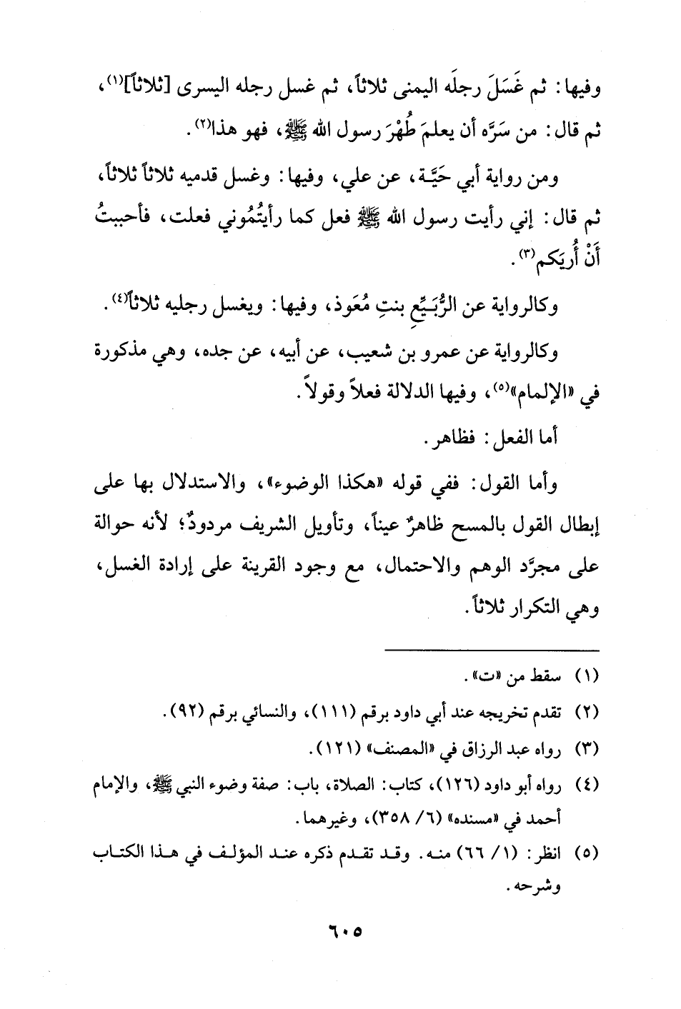 (¬4) رواه أبو داود (126)، كتاب: الصلاة، باب: صفة وضوء النبي - صلى الله عليه وسلم -، والإمام أحمد في "مسنده" (6/ 358)، وغيرهما.