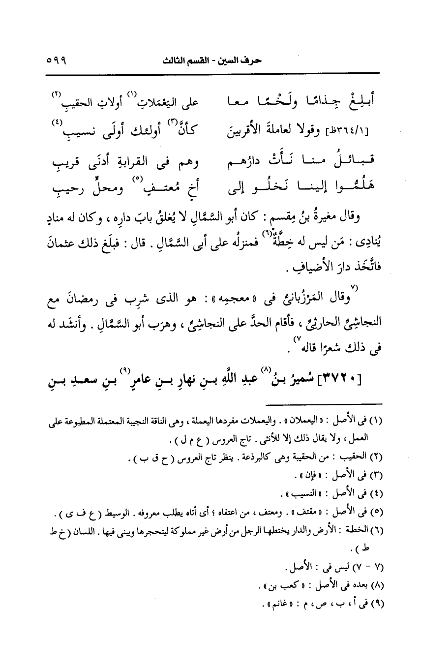 3720- (ز) سمير بن عَبد الله بن نهار بن غانم ابن سَعد بن جبل بن كنانة بن ناجية بن مراد المرادي.