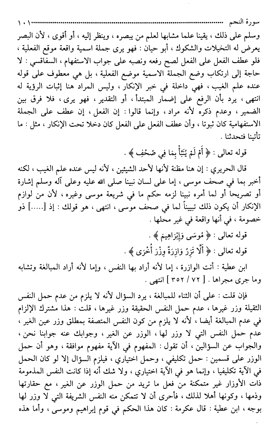 قوله تعالى: {أَلَّا تَزِرُ وَازِرَةٌ وِزْرَ أُخْرَى (38)}