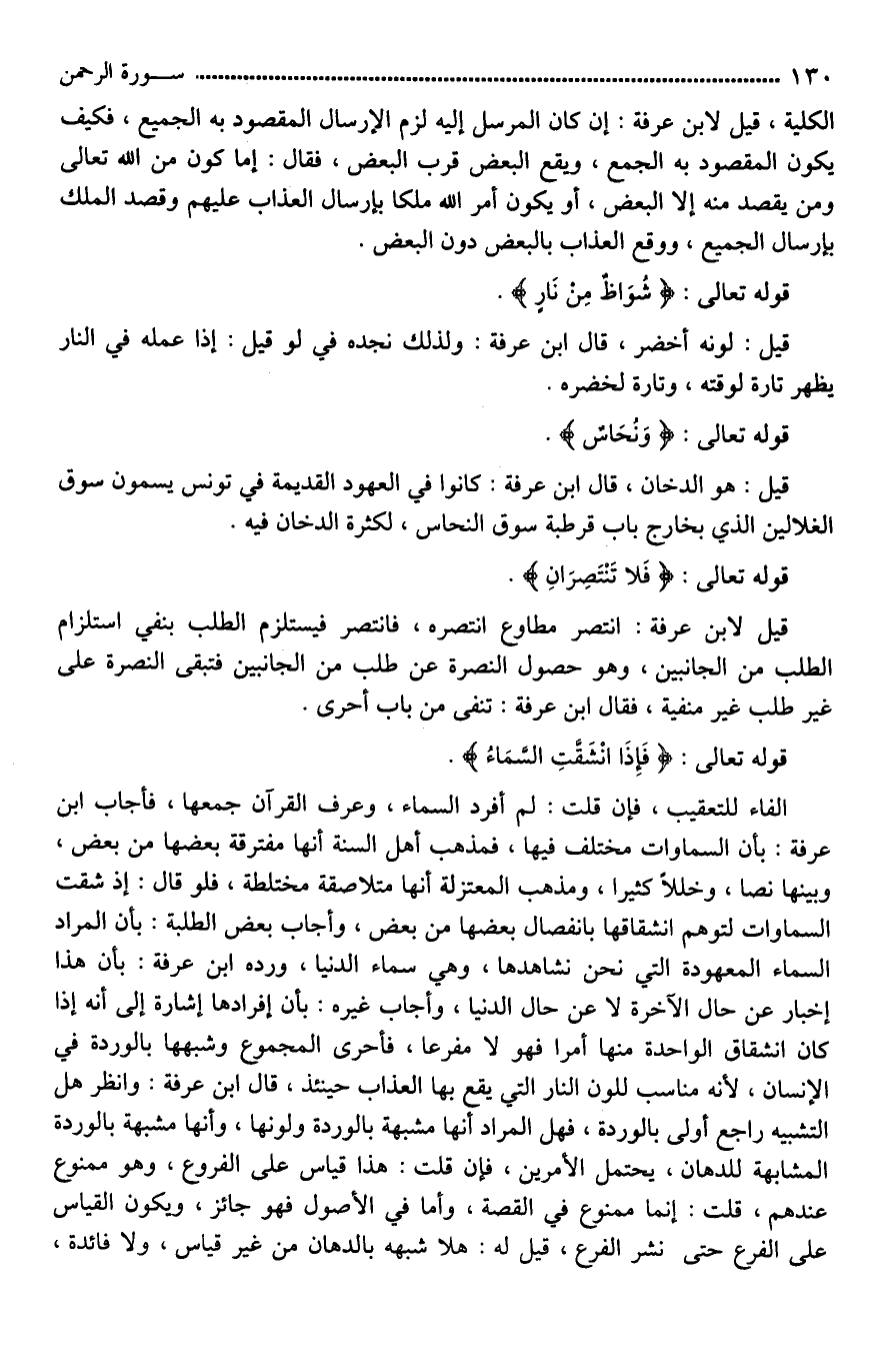 قوله تعالى: (شُوَاظٌ مِنْ نَارٍ).