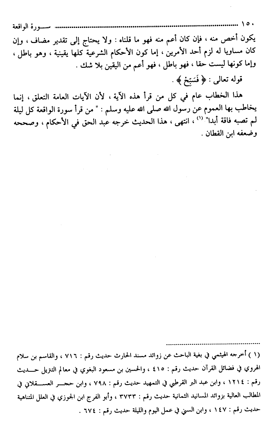 هذا الخطاب عام في كل من قرأ هذه الآية، لأن الآيات العامة التعلق، إنما يخاطب بها العموم عن رسول الله صلى الله عليه وسلم: "من قرأ سورة الواقعة كل ليلة لم تصبه فاقة أبدا"، انتهى، هذا الحديث خرجه عبد الحق في الأحكام، وصححه وضعفه ابن القطان.