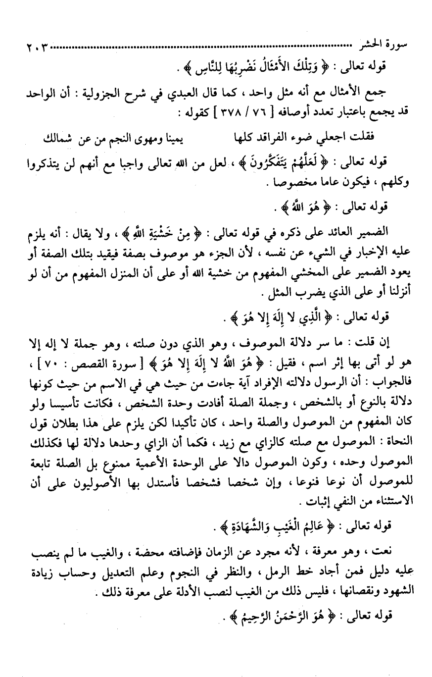 إن قلت: ما سر دلالة الموصوف، وهو الذي دون صلته، وهو جملة لَا إله إلا هو لو أتى بها إثر اسم، فقيل: (هُوَ اللَّهُ لَا إِلَهَ إِلَّا هُوَ)، فالجواب: أن الرسول دلالته الإفراد آية جاءت من حيث هي في الاسم من حيث كونها دلالة بالنوع، أو بالشخص، وجملة الصلة أفادت وحدة الشخص، فكانت تأسيسا، ولو كان المفهوم من الموصول والصلة واحد، كان تأكيدا لكن يلزم على هذا بطلان قول النحاة: الموصول مع صلته كالزاي مع زيد، فكما أن الزاي وحدها دلالة لها فكذلك الموصول وحده، وكون الموصول دالا على الوحدة الأعمية ممنوع؛ بل الصلة تابعة للموصول إن نوعا فنوعا، وإن شخصا فشخصا، فاستدل بها الأصوليون على أن الاستثناء من النفي إثبات.