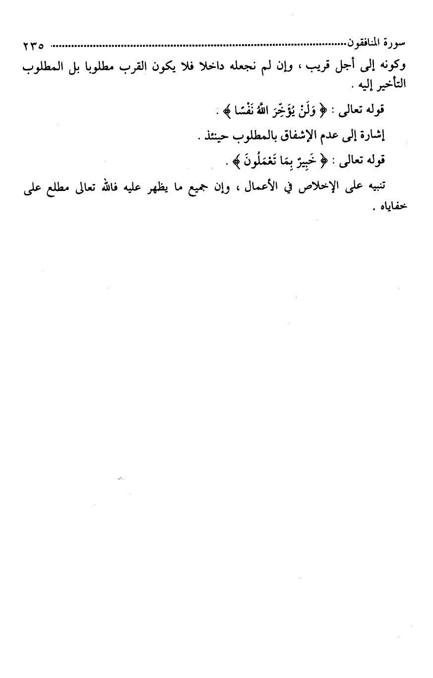 قوله تعالى: {وَلَنْ يُؤَخِّرَ اللَّهُ نَفْسًا ... (11)}