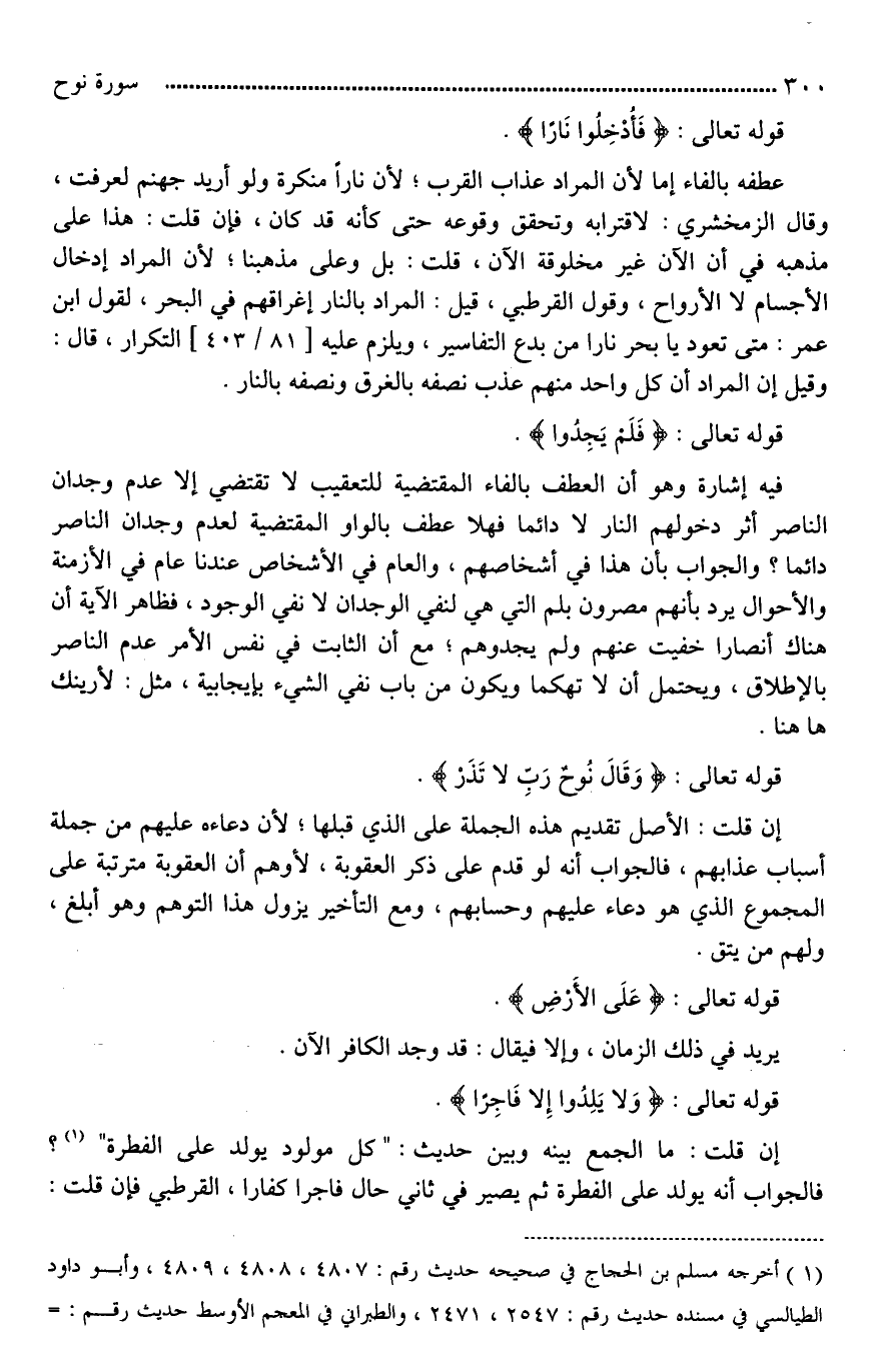 إن قلت: ما الجمع بينه وبين حديث: "كُلُّ مَوْلُودٍ يُولَدُ عَلَى الفِطْرَةِ"؟ فالجواب أنه يولد على الفطرة ثم يصير في ثاني حال فَاجِرًا كَفَّارًا، القرطبي فإن قلت: