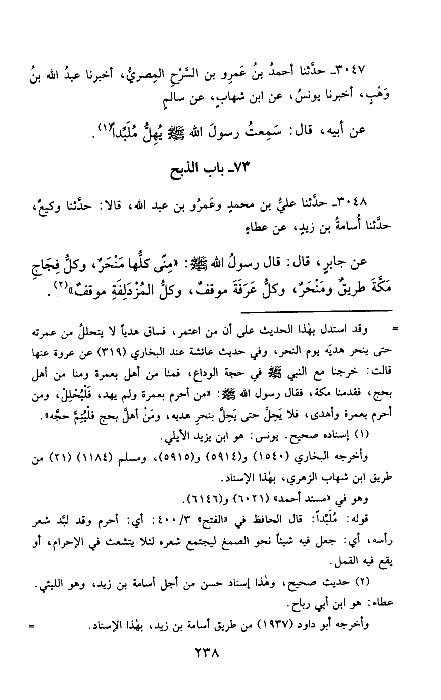 3047- حَدَّثَنَا أَحْمَدُ بْنُ عَمْرِو بْنِ السَّرْحِ الْمِصْرِيُّ ، أَخْبَرَنَا عَبْدُ اللهِ بْنُ وَهْبٍ ، أَخْبَرَنَا يُونُسُ ، عَنِ ابْنِ شِهَابٍ ، عَنْ سَالِمٍ ، عَنْ أَبِيهِ ، قَالَ : سَمِعْتُ رَسُول اللهِ صَلَّى الله عَليْهِ وسَلَّمَ يُهِلُّ مُلَبِّدًا.