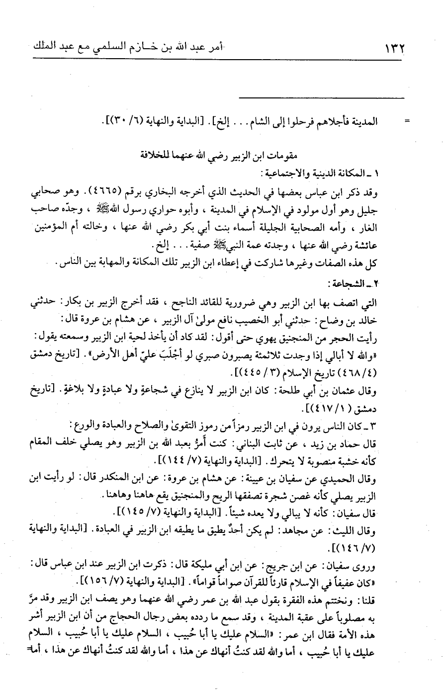 قلنا: ونختتم هذه الفقرة بقول عبد الله بن عمر رضي الله عنهما وهو يصف ابن الزبير وقد مرَّ به مصلوبًا على عقبة المدينة، وقد سمع ما ردده بعض رجال الحجاج من أن ابن الزبير أشر هذه الأمة فقال ابن عمر: "السلام عليك يا أبا حُبيب، السلام عليك يا أبا حُبيب، السلام عليك يا أبا حُبيب، أما والله لقد كنتُ أنهاك عن هذا، أما والله لقد كنتُ أنهاك عن هذا، أما =