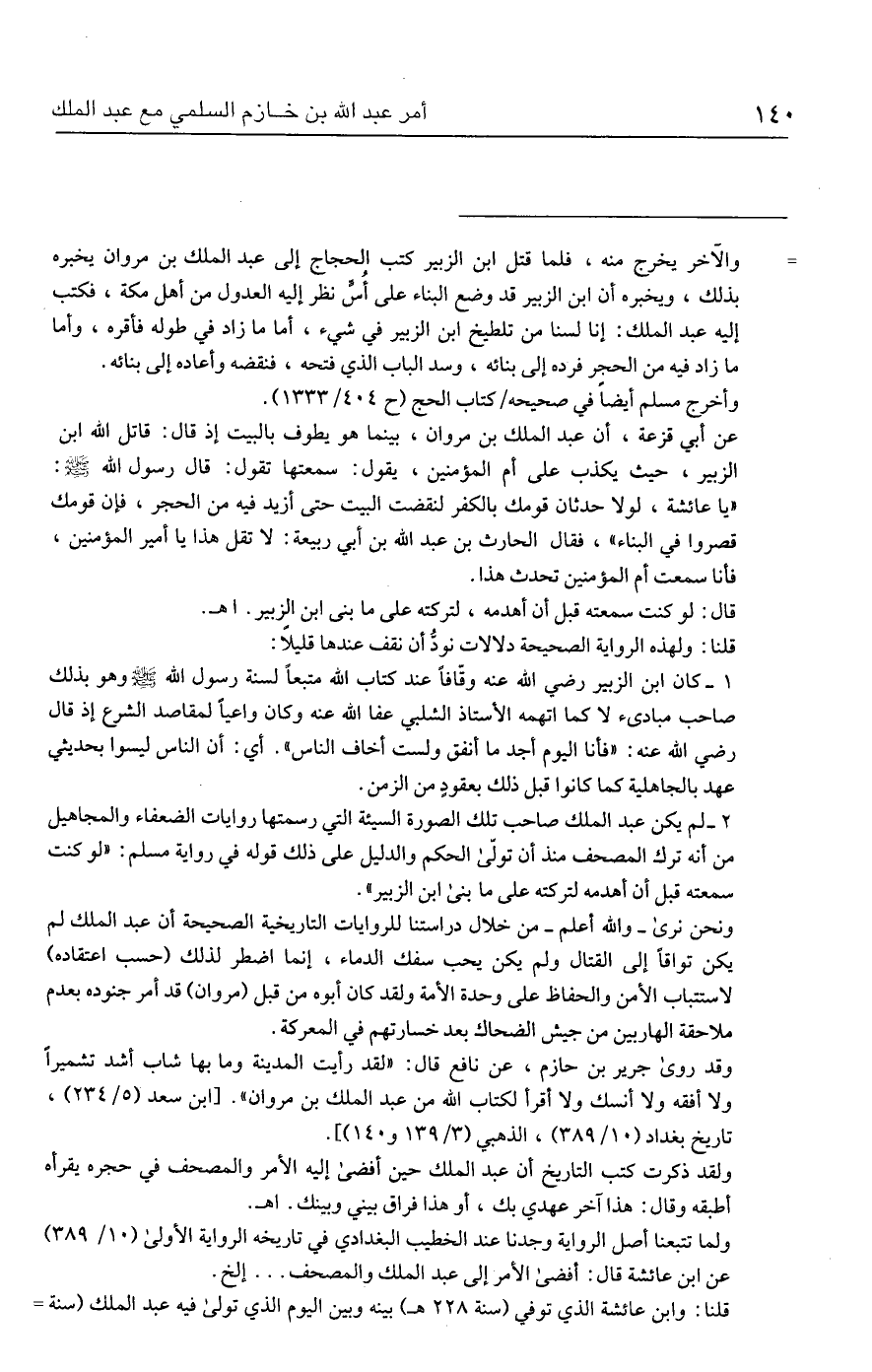 ٢ - لم يكن عبد الملك صاحب تلك الصورة السيئة التي رسمتها روايات الضعفاء والمجاهيل من أنه ترك المصحف منذ أن تولى الحكم والدليل على ذلك قوله في رواية مسلم: "لو كنت سمعته قبل أن أهدمه لتركته على ما بينى ابن الزبير".