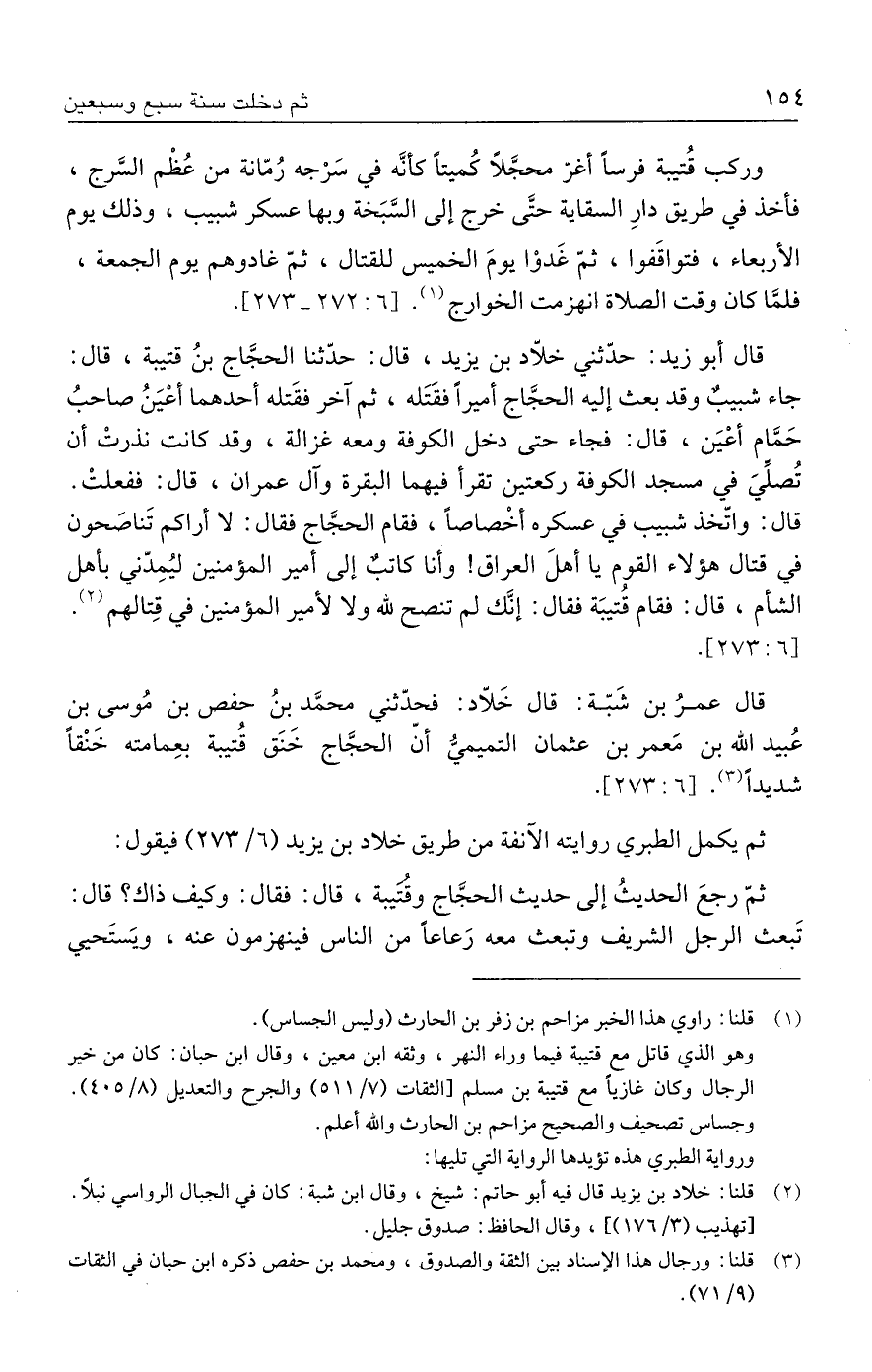 ثم يكمل الطبري روايته الآنفة من طريق خلاد بن يزيد (٦/ ٢٧٣) فيقول: