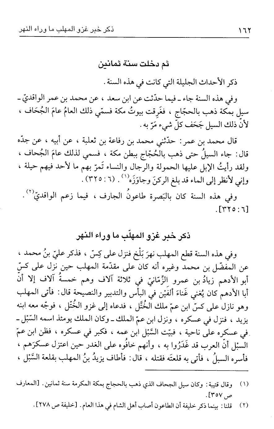 (١) وقال قتيبة: وكان سيل الجحاف الذي ذهب بالحجاج بمكة المكرمة سنة ثمانين. [المعارف ص ٣٥٧].