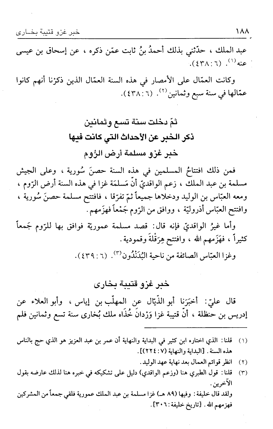وكانت العمّال على الأمصار في هذه السنة العمّال الذين ذكرْنا أنهم كانوا عمّالها في سنة سبع وثمانين (٢). (٦: ٤٣٨).