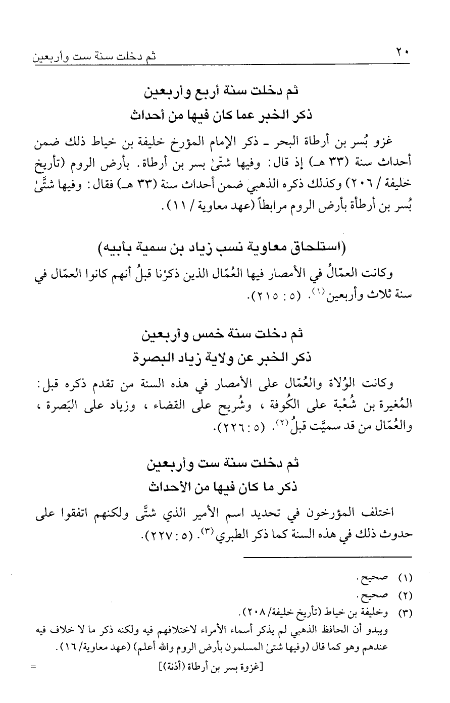 ويبدو أن الحافظ الذهبي لم يذكر أسماء الأمراء لاختلافهم فيه ولكنه ذكر ما لا خلاف فيه عندهم وهو كما قال (وفيها شتى المسلمون بأرض الروم والله أعلم) (عهد معاوية / ١٦). [غزوة بسر بن أرطاة (أذنة)] =
