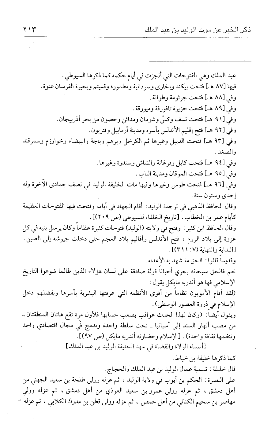 = عبد الملك وهي الفتوحات التي أنجزت في أيام حكمه كما ذكرها السيوطي.