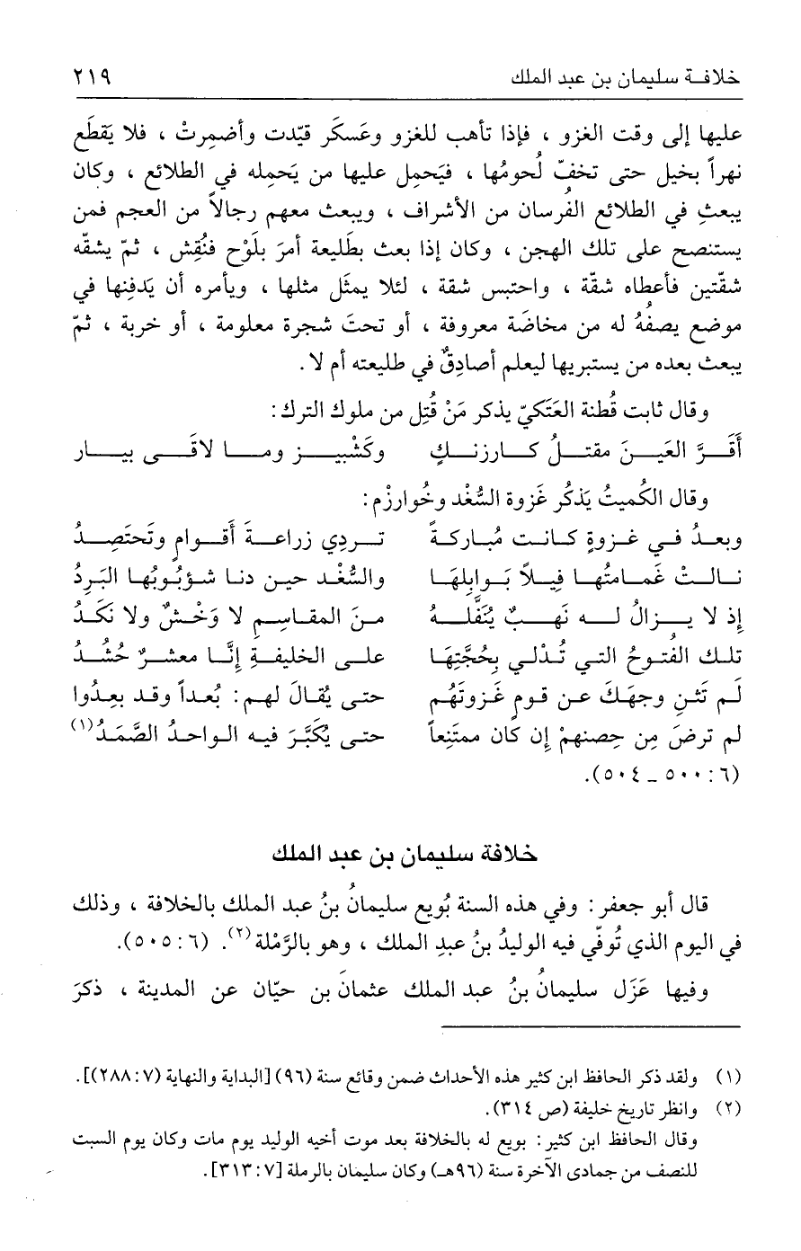 قال أبو جعفر: وفي هذه السنة بُويع سليمانُ بن عبد الملك بالخلافة، وذلك في اليوم الذي تُوفِّي فيه الوليدُ بن عبد الملك، وهو بالرَّمْلة (٢). (٦: ٥٠٥).