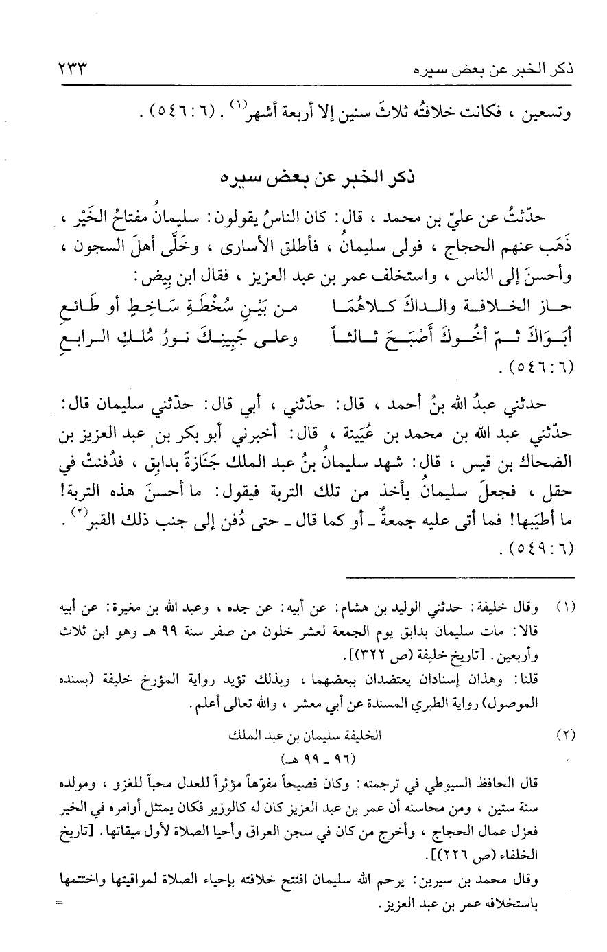 قلنا: وهذان إسنادان يعتضدان ببعضهما، وبذلك تؤيد رواية المؤرخ خليفة (بسنده الموصول) رواية الطبري المسندة عن أبي معشر، والله تعالى أعلم.