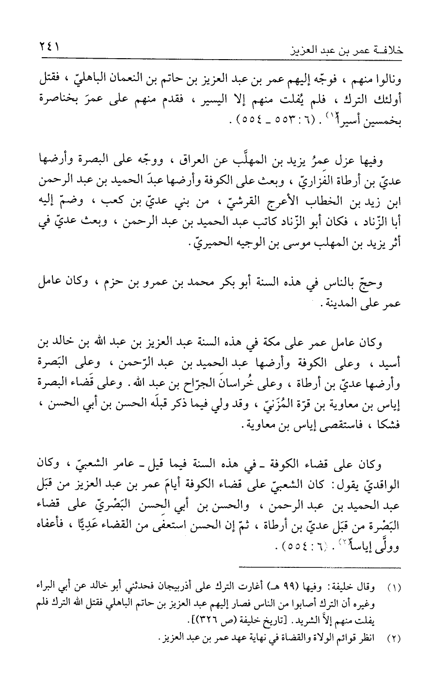 (٢) انظر قوائم الولاة والقضاة في نهاية عهد عمر بن عبد العزيز.