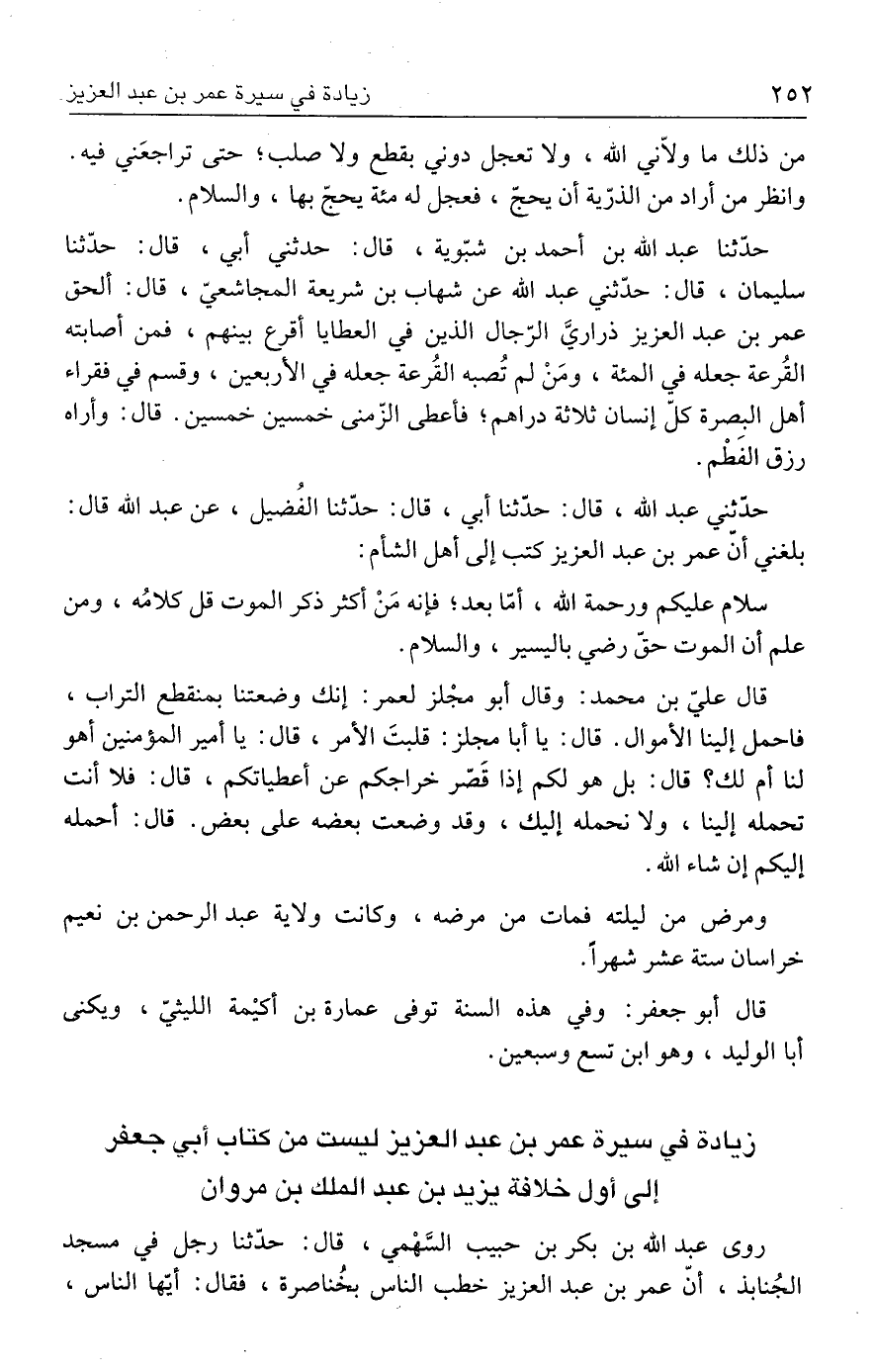 زيادة في سيرة عمر بن عبد العزيز ليست من كتاب أبي جعفر إلى أول خلافة يزيد بن عبد الملك بن مروان