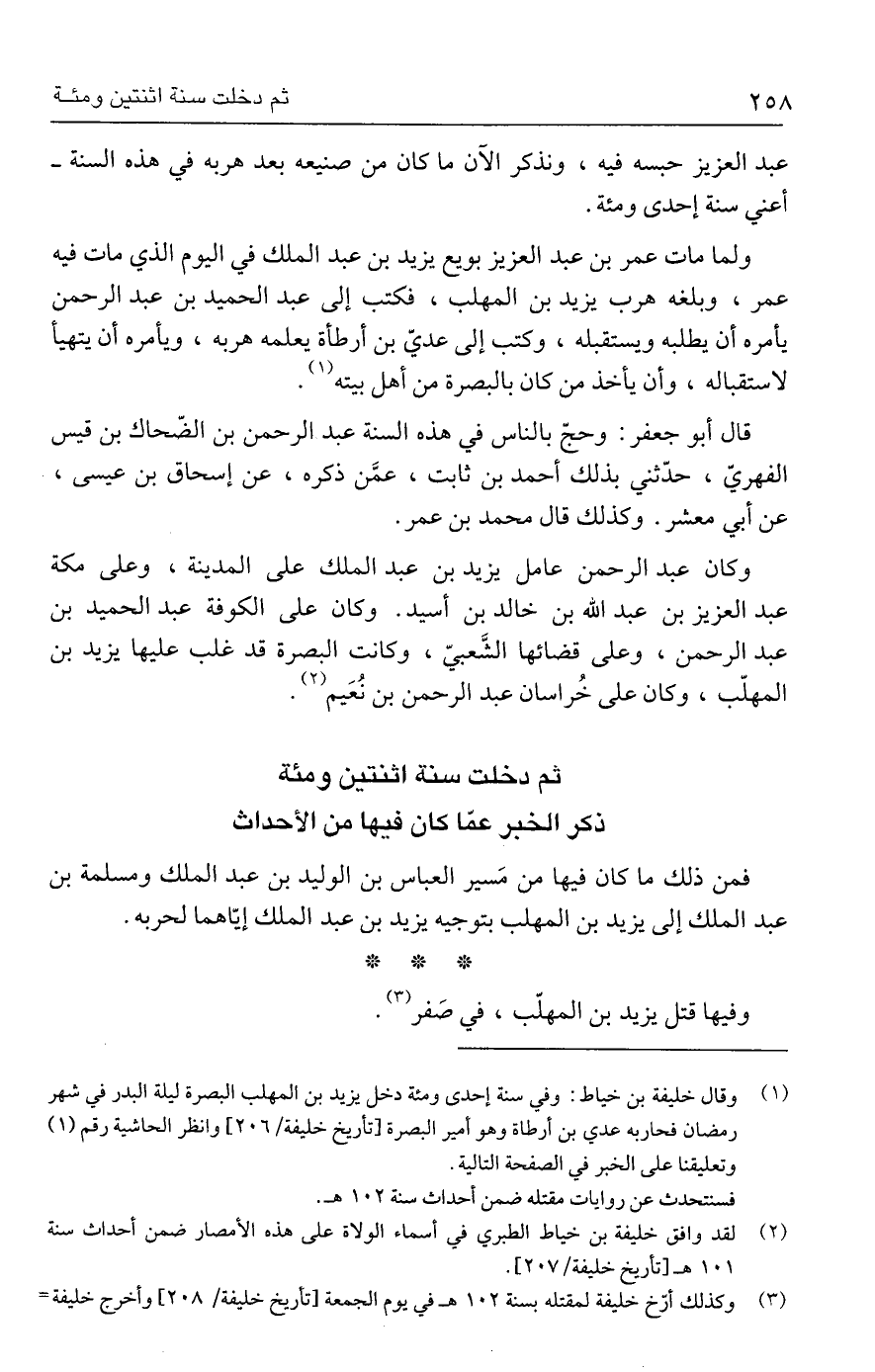 (٣) وكذلك أرّخ خليفة لمقتله بسنة ١٠٢ هـ في يوم الجمعة [تاريخ خليفة / ٢٠٨] وأخرج خليفة =
