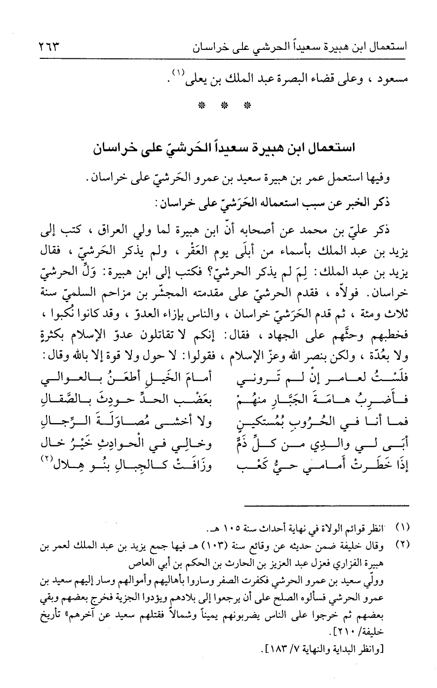 استعمال ابن هبيرة سعيدًا الحَرشيّ على خراسان