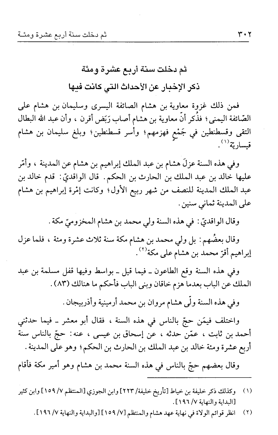 (١) وكذلك ذكر خليفة بن خياط [تأريخ خليفة / ٢٢٣] وابن الجوزي [المنتظم ٧/ ١٥٩] وابن كثير [البداية والنهاية ٧/ ١٩٦].