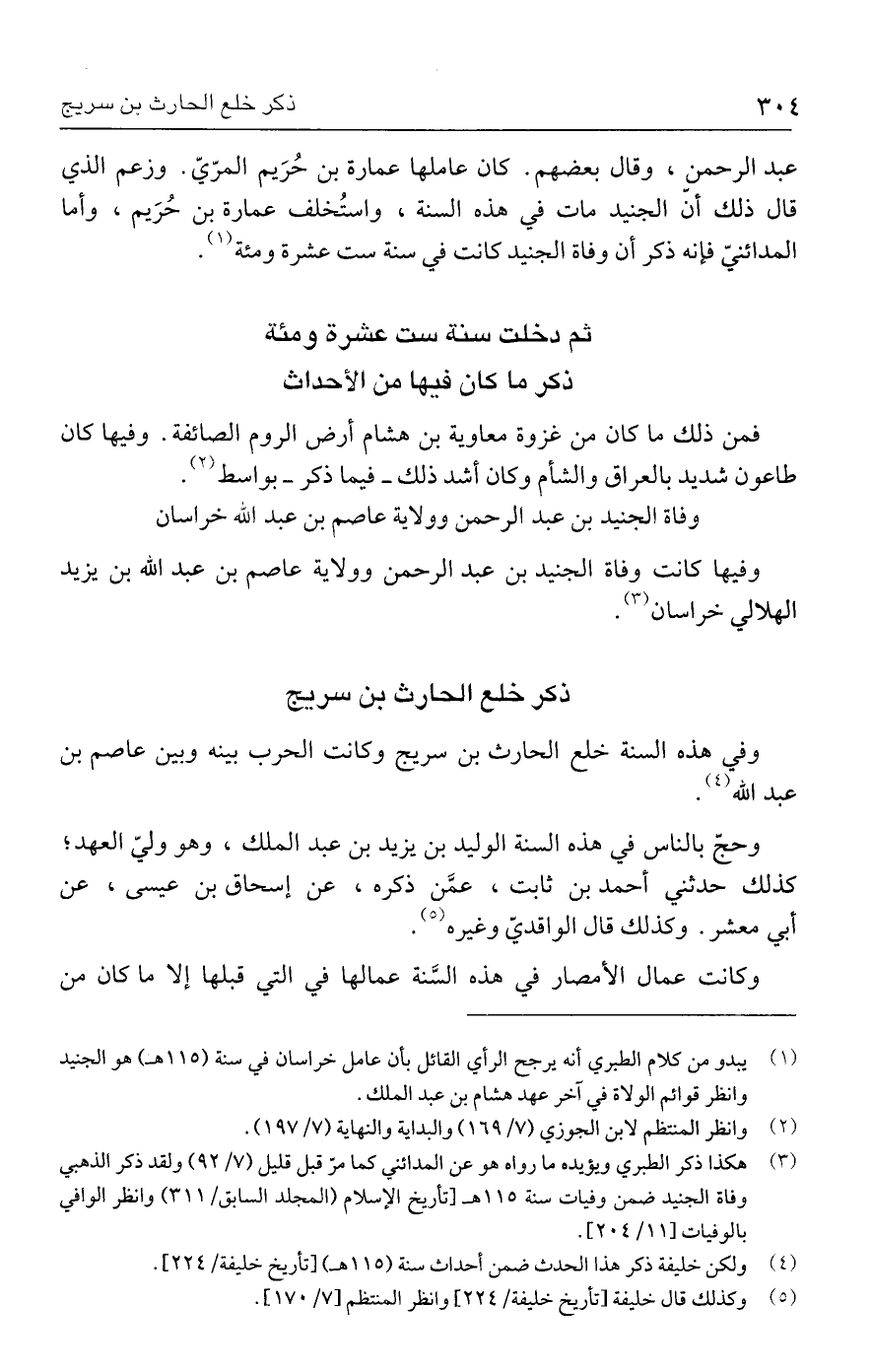 (٤) ولكن خليفة ذكر هذا الحدث ضمن أحداث سنة (١١٥ هـ) [تأريخ خليفة / ٢٢٤].