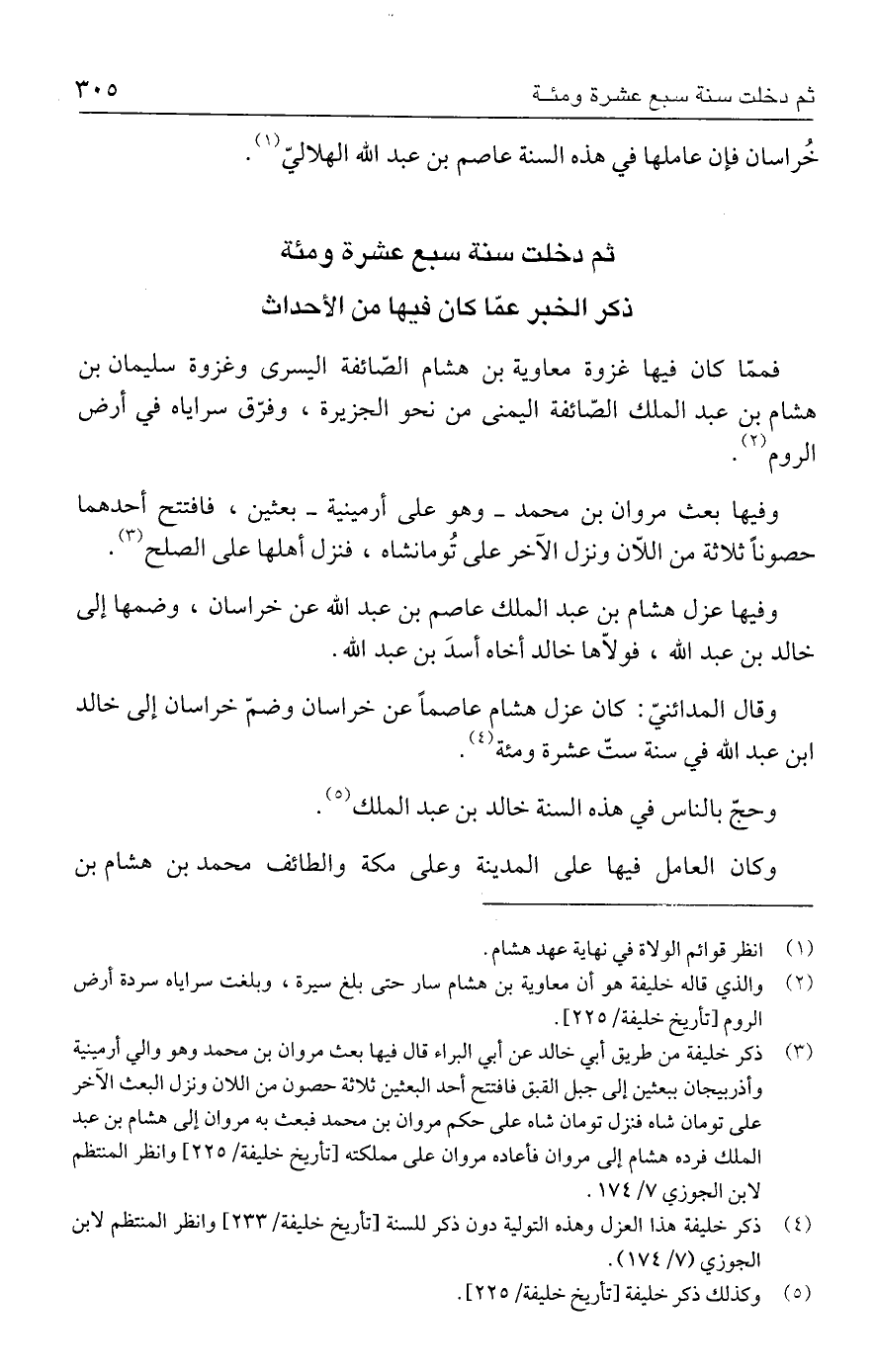 (٥) وكذلك ذكر خليفة [تأريخ خليفة / ٢٢٥].