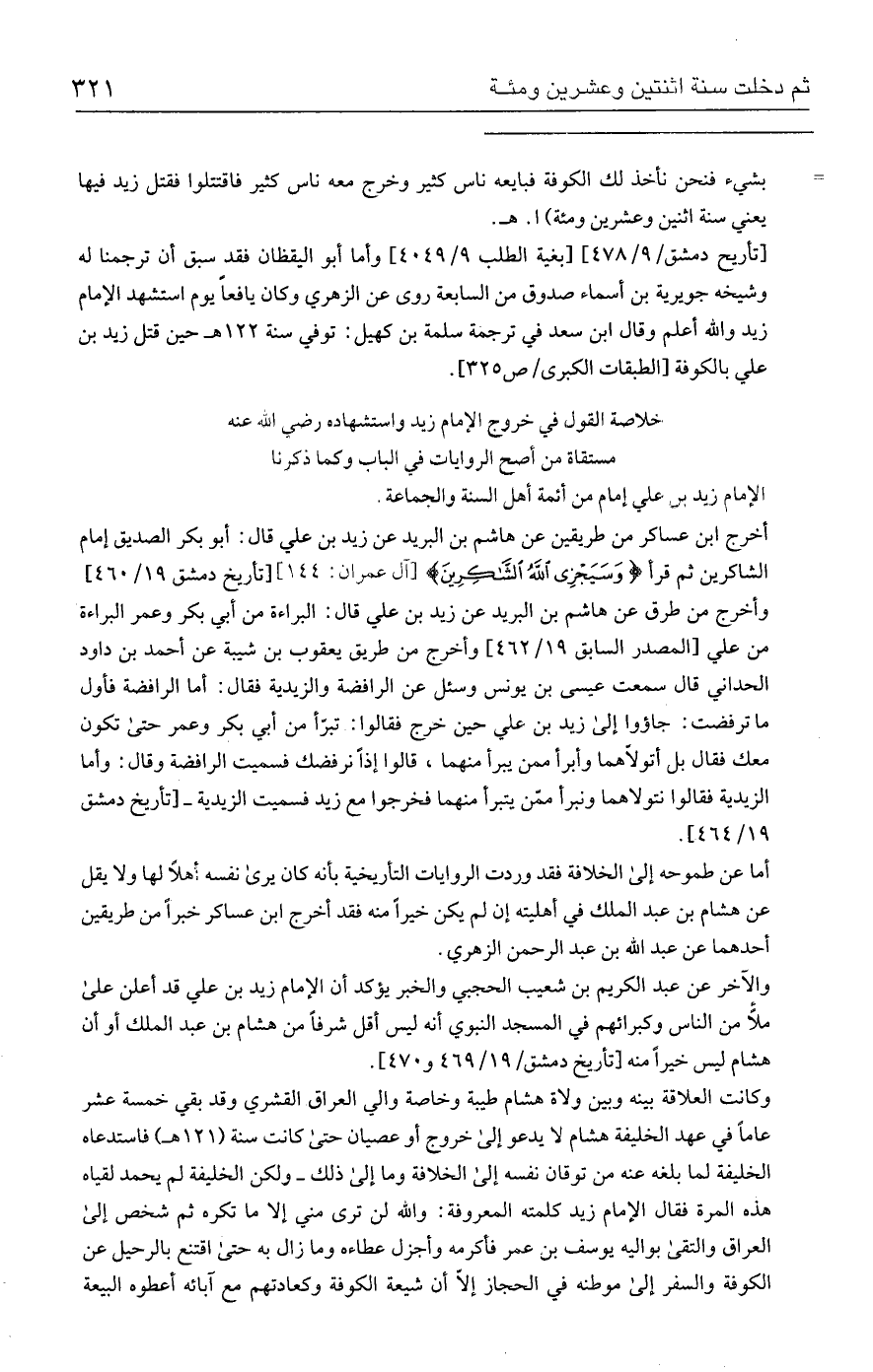 خلاصة القول في خروج الإمام زيد واستشهاده رضي الله عنه مستقاة من أصح الروايات في الباب وكما ذكرنا