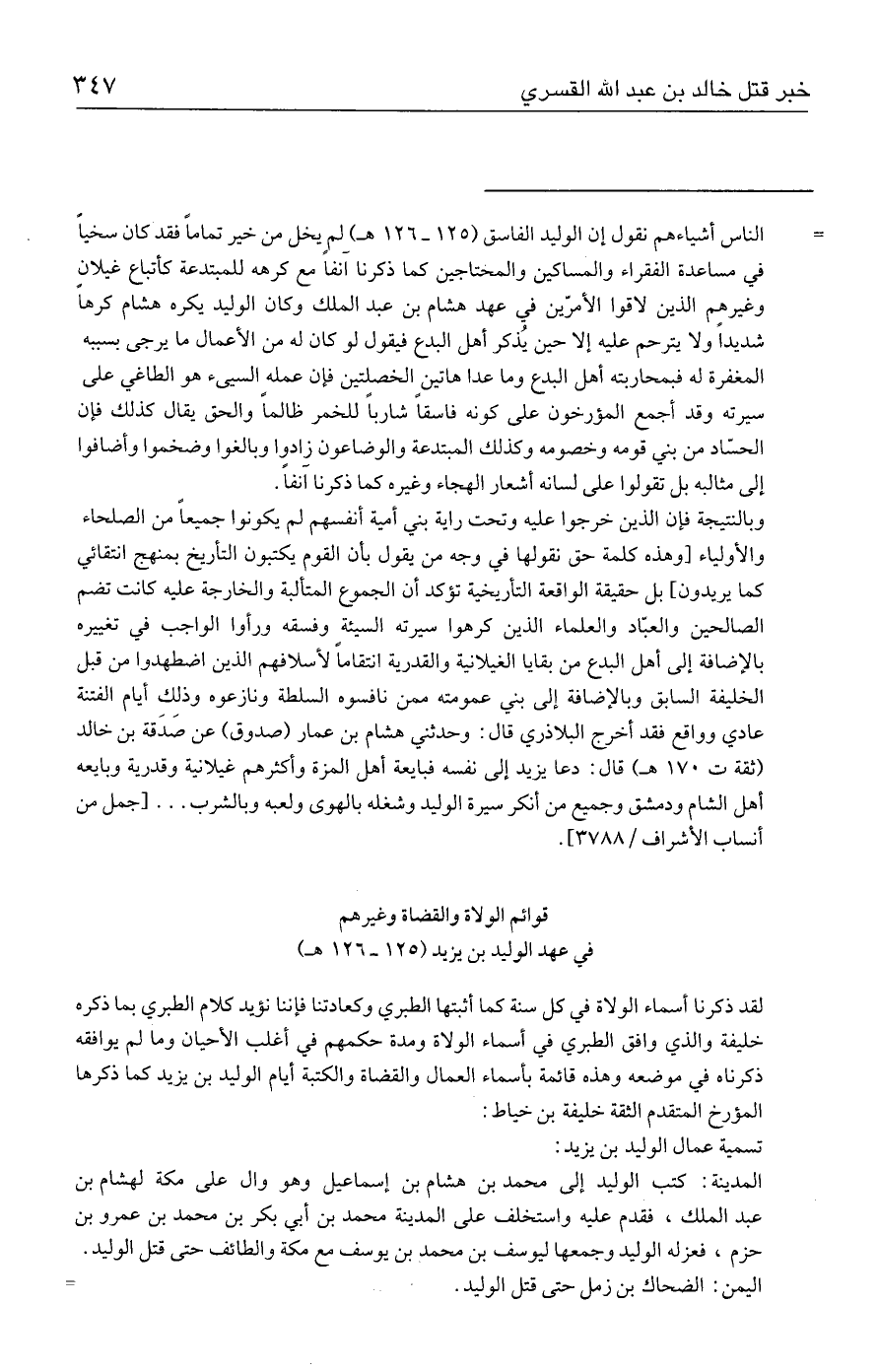 قوائم الولاة والقضاة وغيرهم في عهد الوليد بن يزيد (١٢٥ - ١٢٦ هـ)
