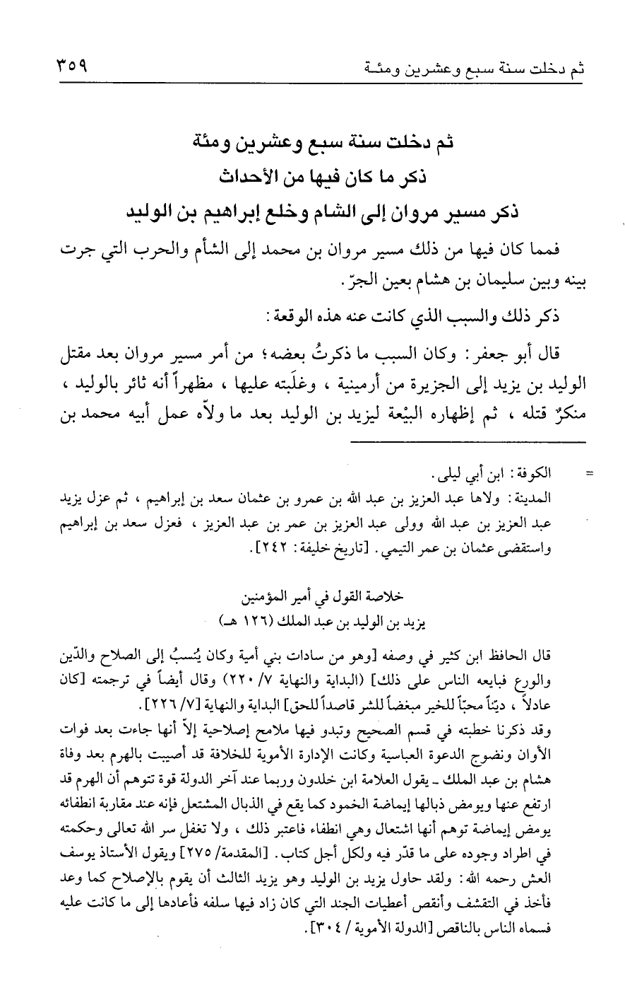 خلاصة القول في أمير المؤمنين يزيد بن الوليد بن عبد الملك (١٢٦ هـ)
