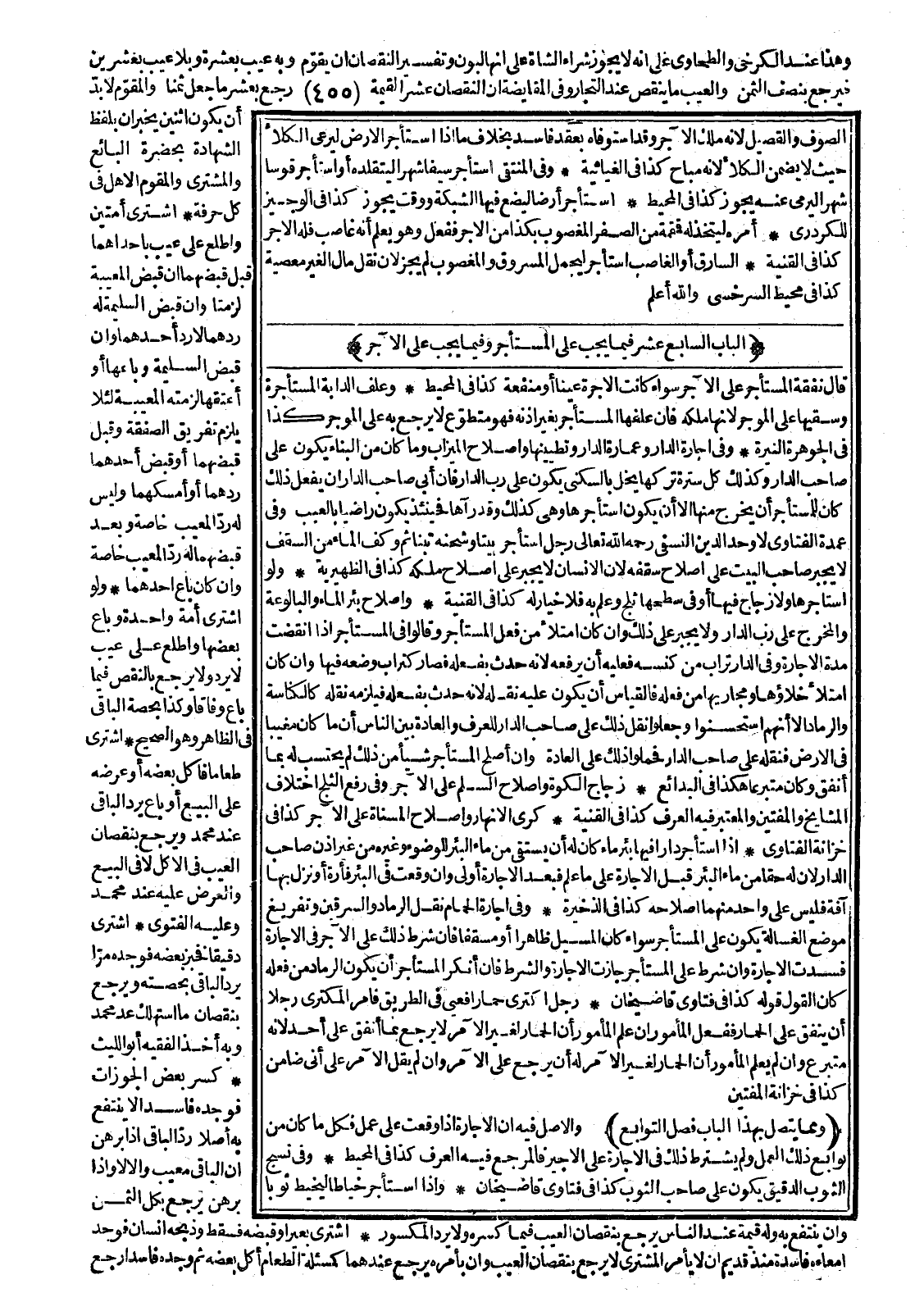 [الْبَابُ السَّابِعَ عَشَرَ فِيمَا يَجِبُ عَلَى الْمُسْتَأْجِرِ وَفِيمَا يَجِبُ عَلَى الْآجِرِ]